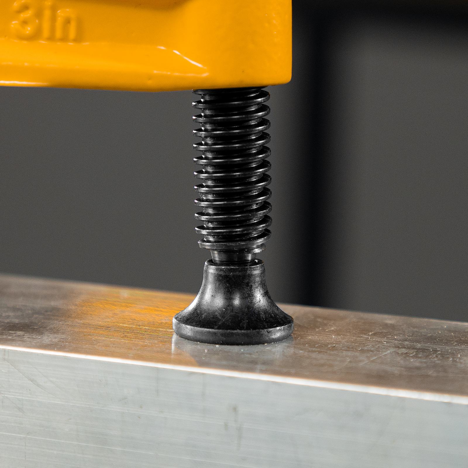 - Надежность — резьбовой шток с трапециевидной резьбой позволяет создавать высокое усилие зажима, обеспечивает плавность хода и износостойкость.