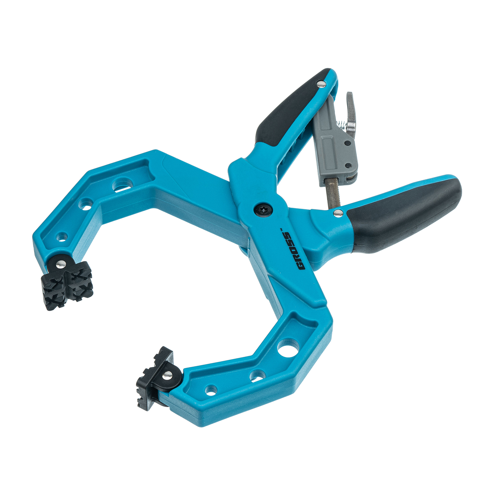 - Благодаря шарнирному креплению прижимных насадок сжимаемые детали можно устанавливать под разными углами.