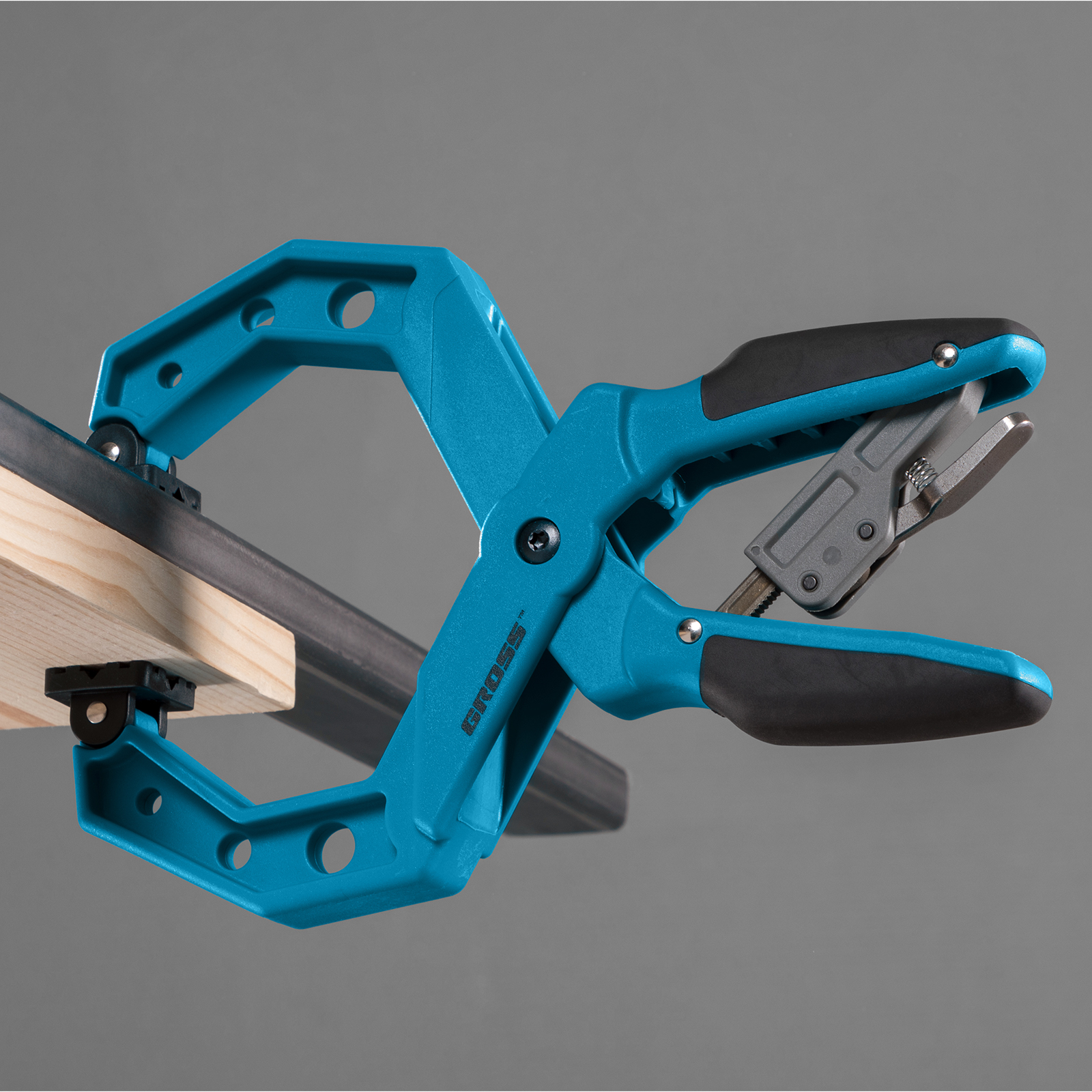 - Курковый фиксатор обеспечивает моментальное раскрытие струбцины, что облегчает работу с ней.