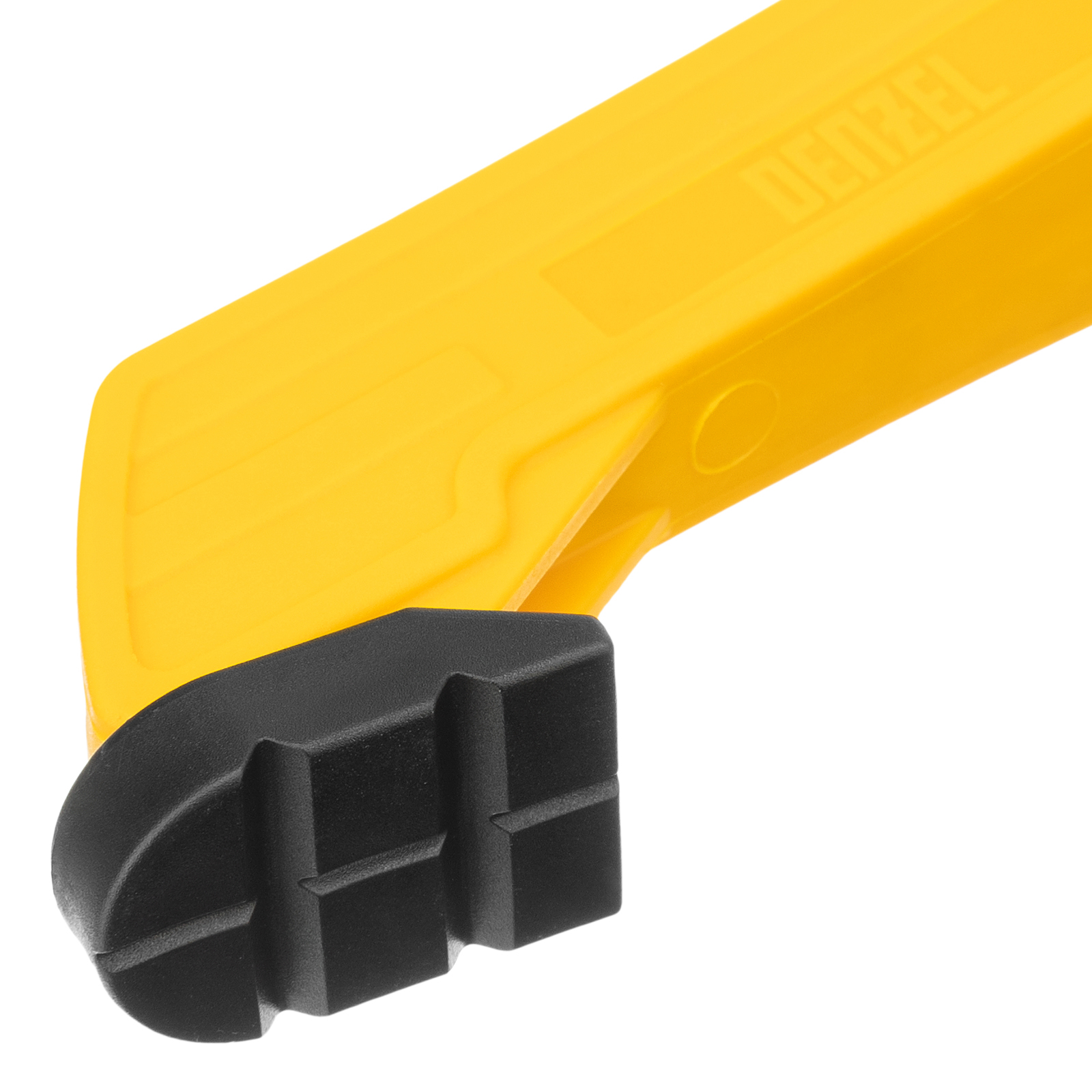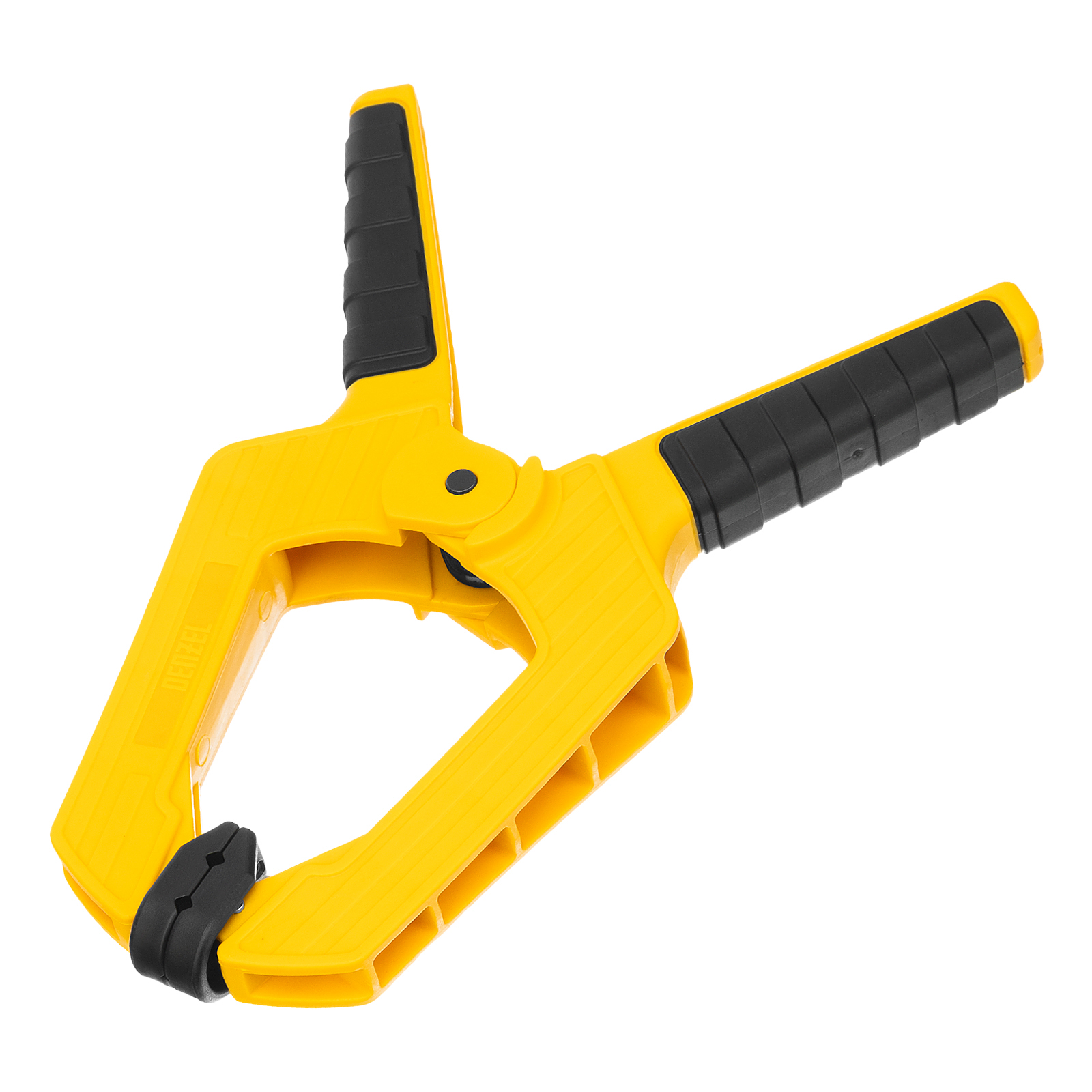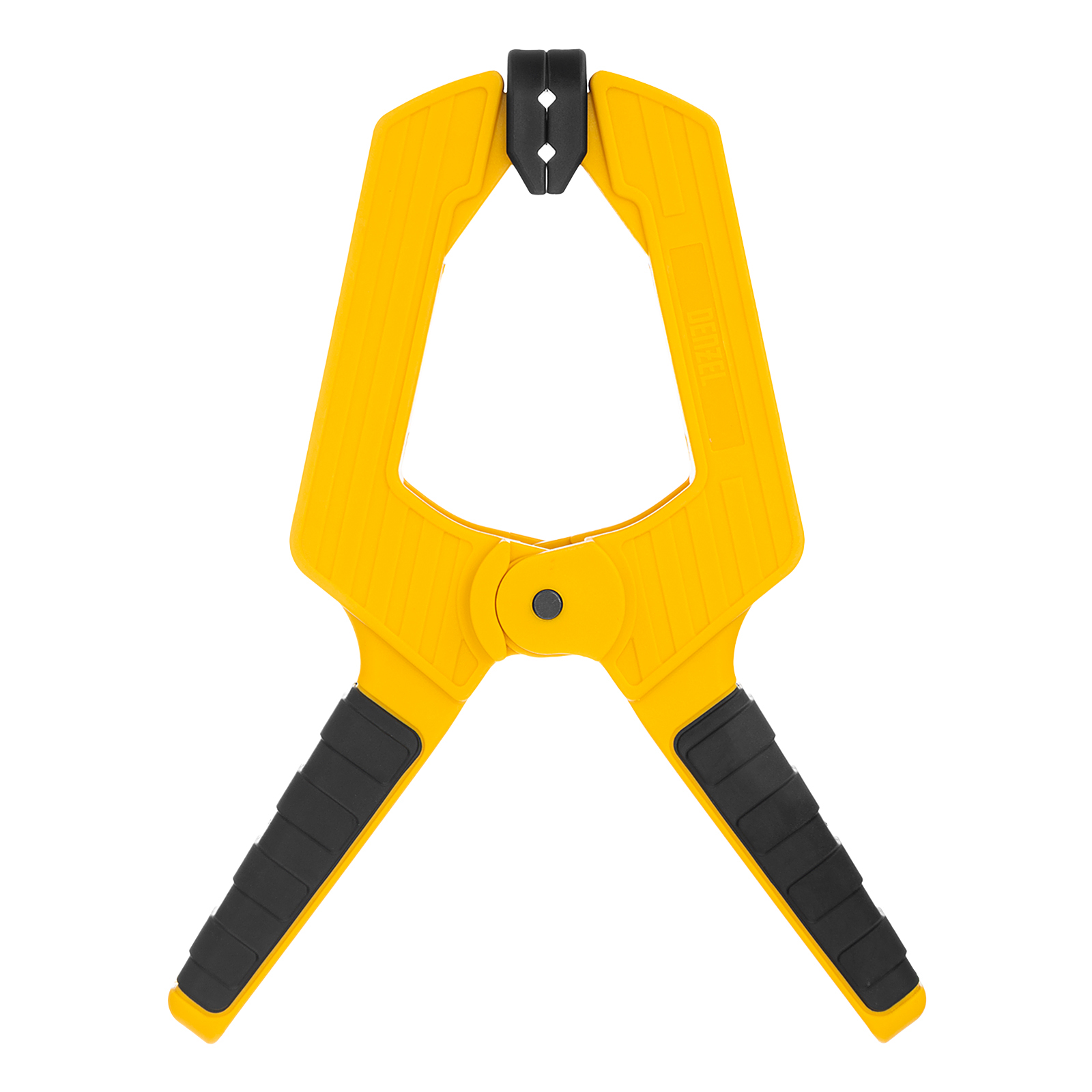 Струбцина клещеобразная удлиненная Denzel 20798 с глубиной зажима 80 мм, с двухкомпонентными рукоятками, способна удерживать детали толщиной до 100 мм. Будет полезна при склеивании или разметке заготовок. Подвижные губки с углублениями на прижимных поверхностях позволяют максимально точно позиционировать деталь при захвате. Струбцина пригодится в столярной мастерской, дома или на даче.