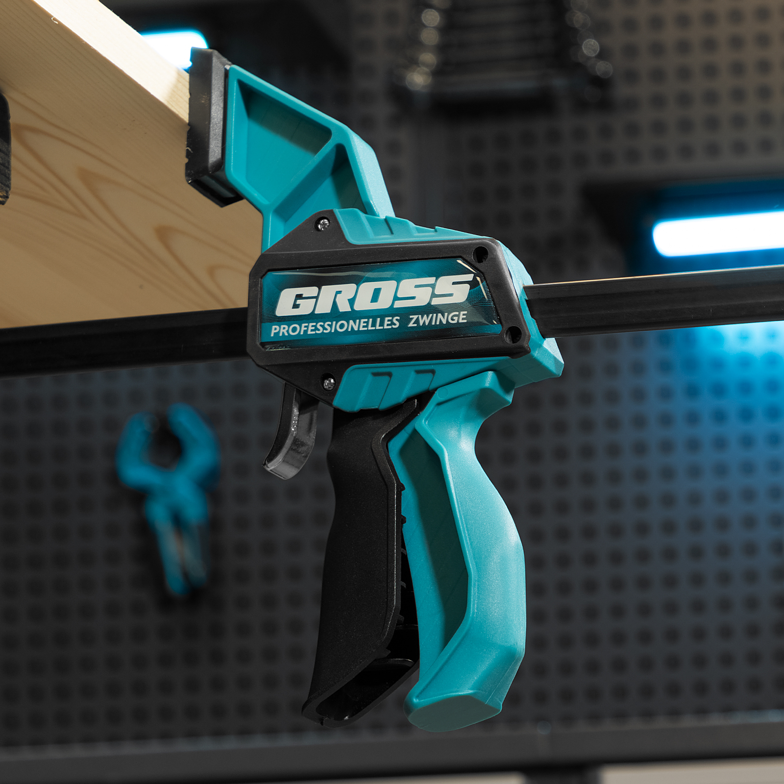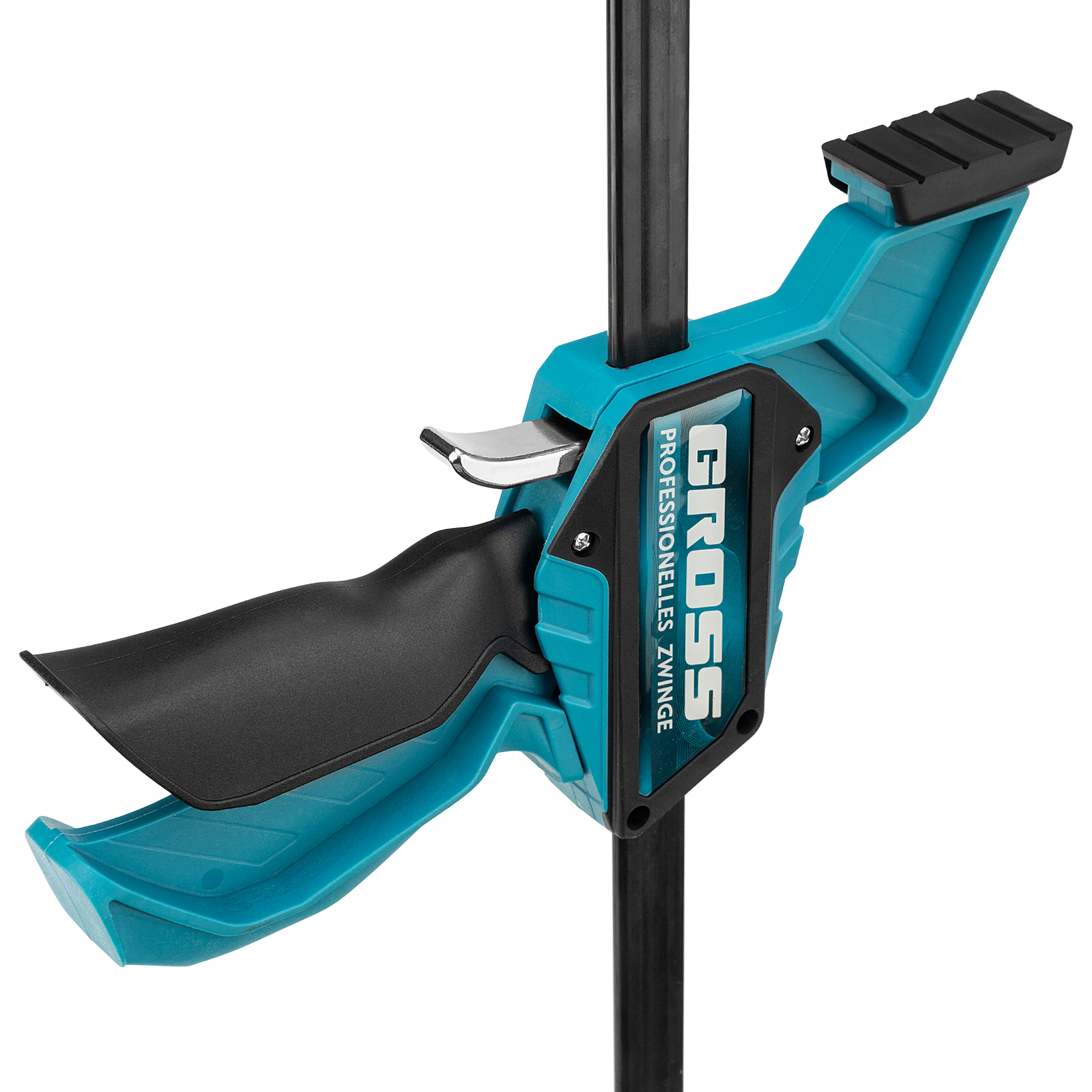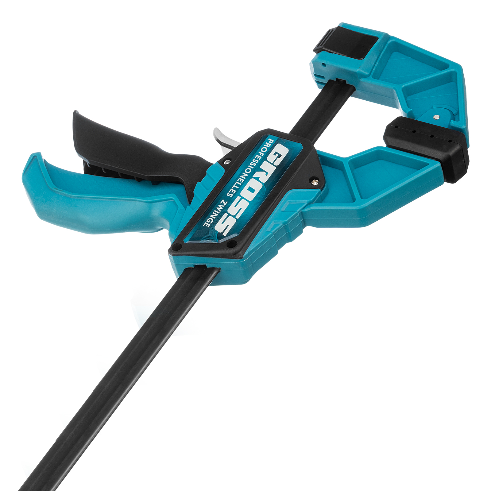 - Многофункциональность — опорную губку можно переставить на другой конец рейки, чтобы использовать струбцину как распорный инструмент.