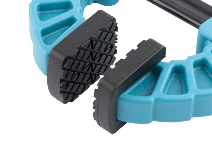 - На губках установлены съемные резиновые прижимные накладки, защищающие поверхность зажимаемого предмета от повреждений, что особенно важно при работе с деревянными деталями.