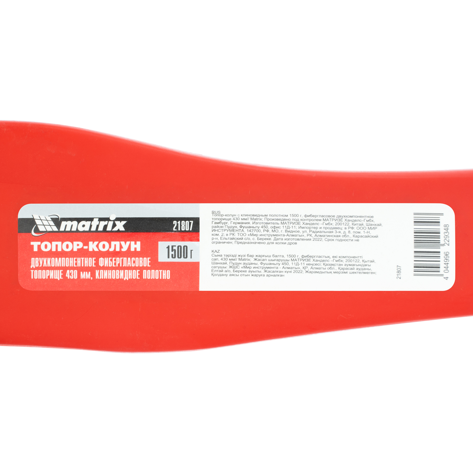 Топор-колун Matrix 21807 с клиновидным полотном массой 1500 г и фибергласовым двухкомпонентным топорищем длиной 430 мм позволяет как рубить, так и колоть древесину. Рабочее полотно утолщено с обеих сторон, за счет чего легко раскалывает поленья. Топор пригодится при проведении плотницких работ и заготовке дров.