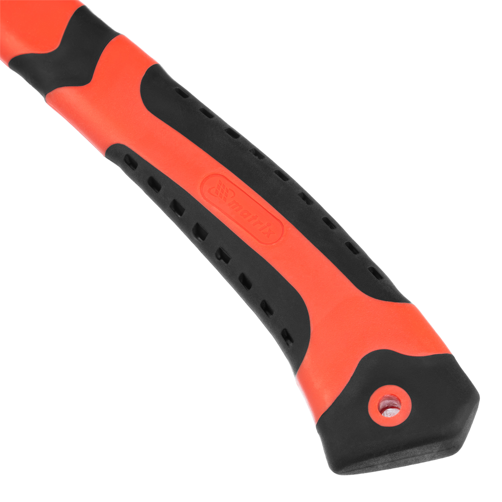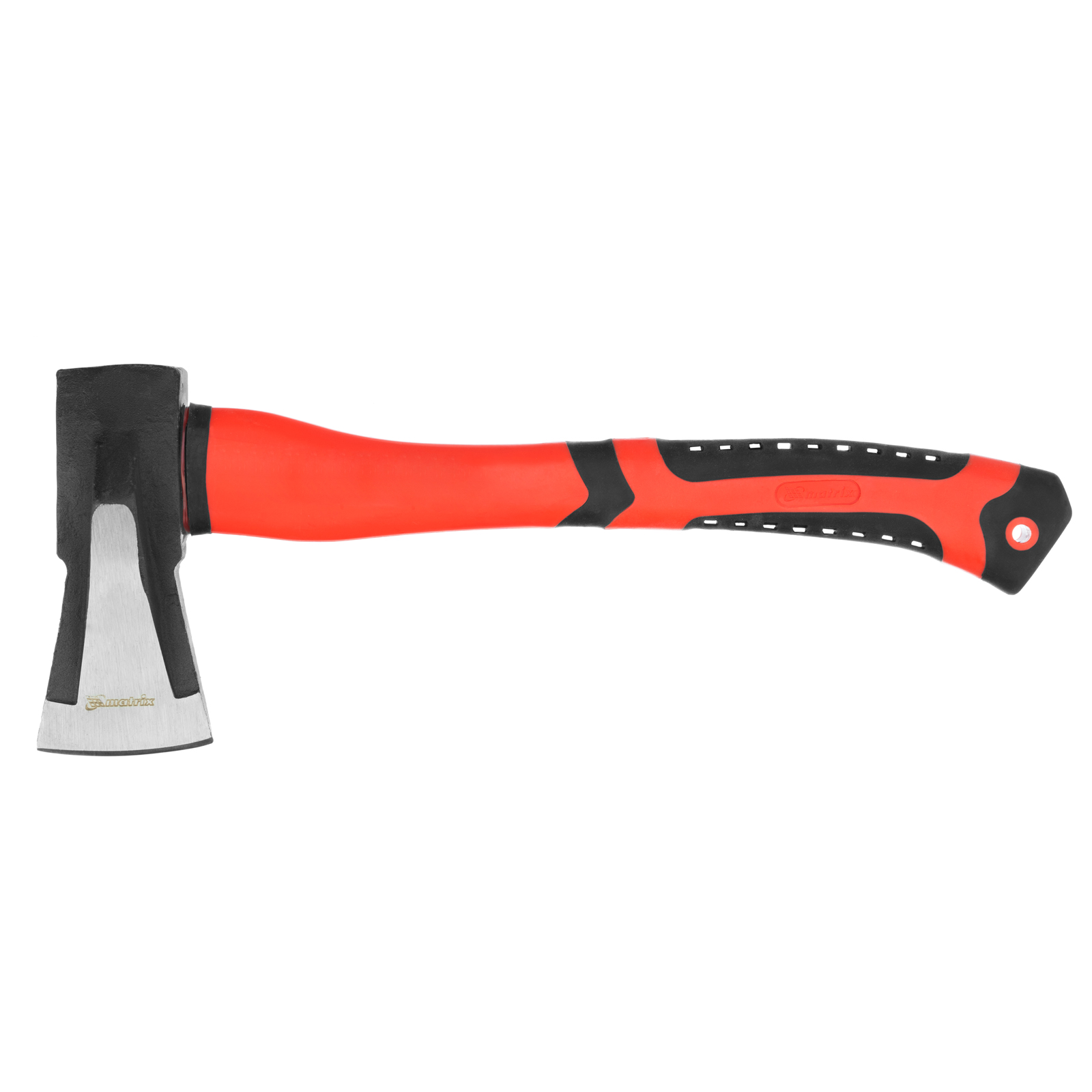 - Комфортная работа — фибергласовое топорище с резиновыми накладками поглощает колебания от ударов и не скользит в руках, а благодаря перфорации на рукоятке ладони не потеют во время работы.