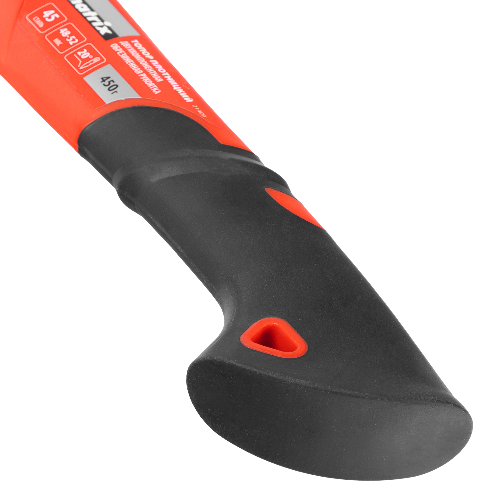 Топор Matrix 21409 длиной 275 мм, с рабочей частью весом 450 г и эргономичной фибергласовой рукояткой, используется для колки мелких дров, рубке щепок, заострения колышков, вырубки кустов, рубки сучьев, обдирки веток, а также выполнения других работ. Полукруглое лезвие упрощает работу. Инструмент пригодится в туристическом походе и отдыхе на природе, будет полезен в быту.