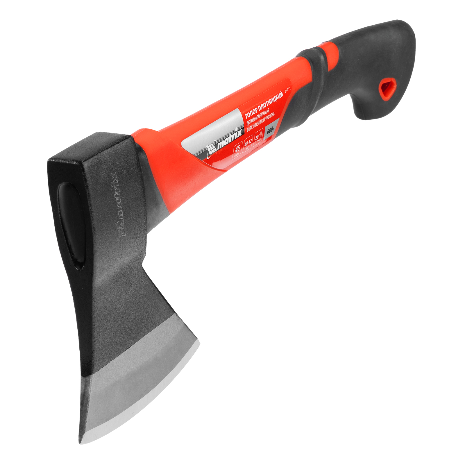 Топор Matrix 21411 длиной 360 мм, с рабочей частью весом 600 г и эргономичной фибергласовой рукояткой, используется для колки дров, заострения колышков, вырубки кустов, рубки сучьев, а также выполнения других работ. Полукруглое лезвие в сочетании с оптимальным соотношением длины и веса упрощает работу. Инструмент используется для решения бытовых задач.