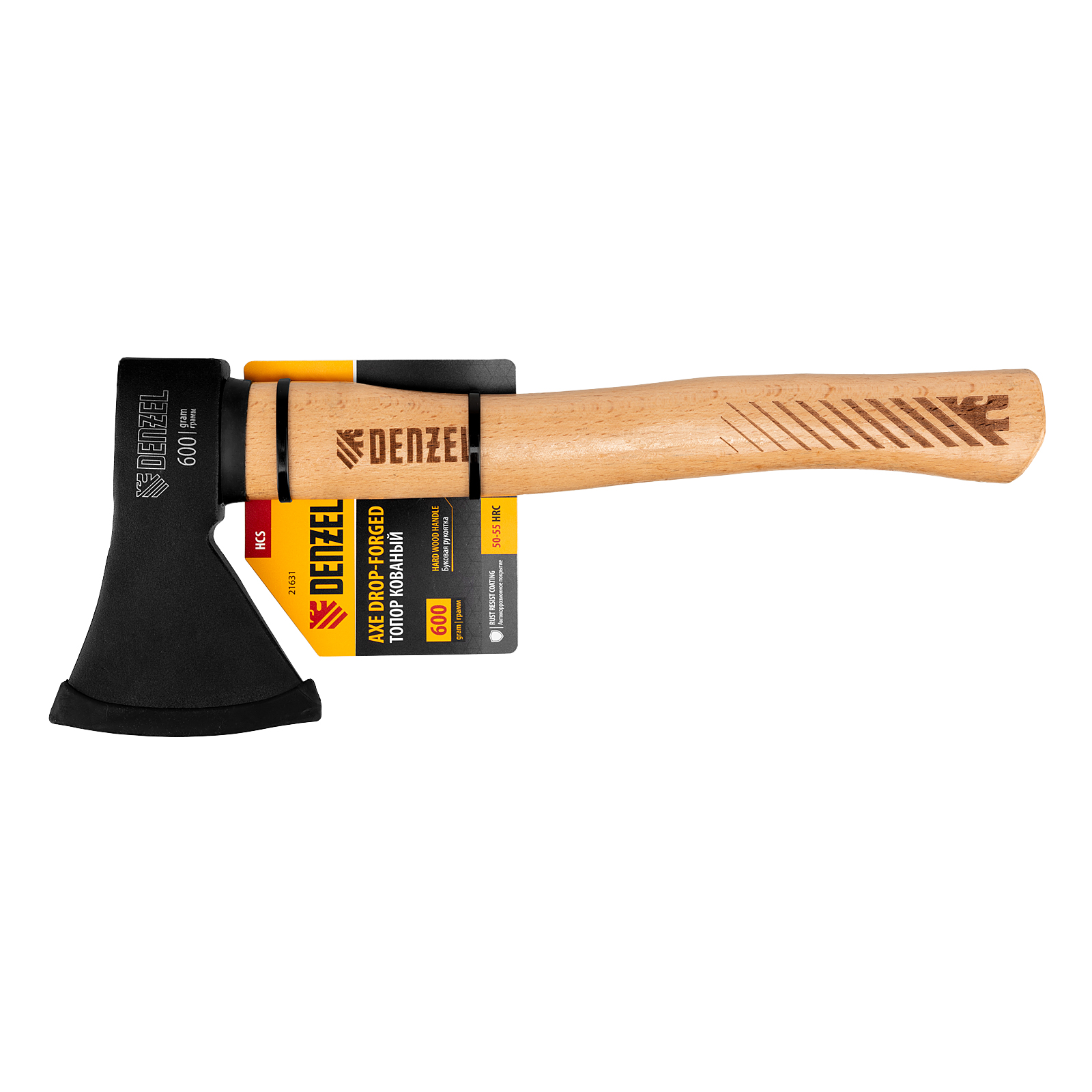 - Устойчивость к нагрузкам — голова топора изготовлена из высокоуглеродистой стали и закалена до твердости 50-55 HRC.
