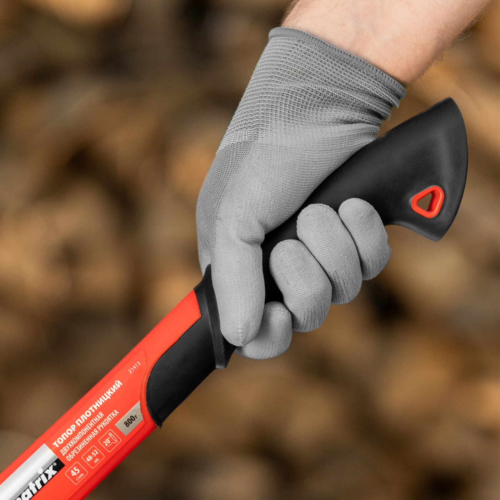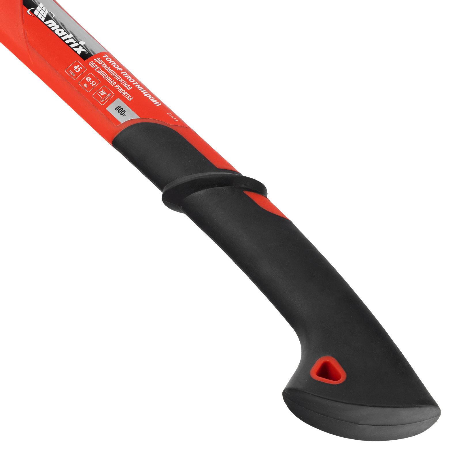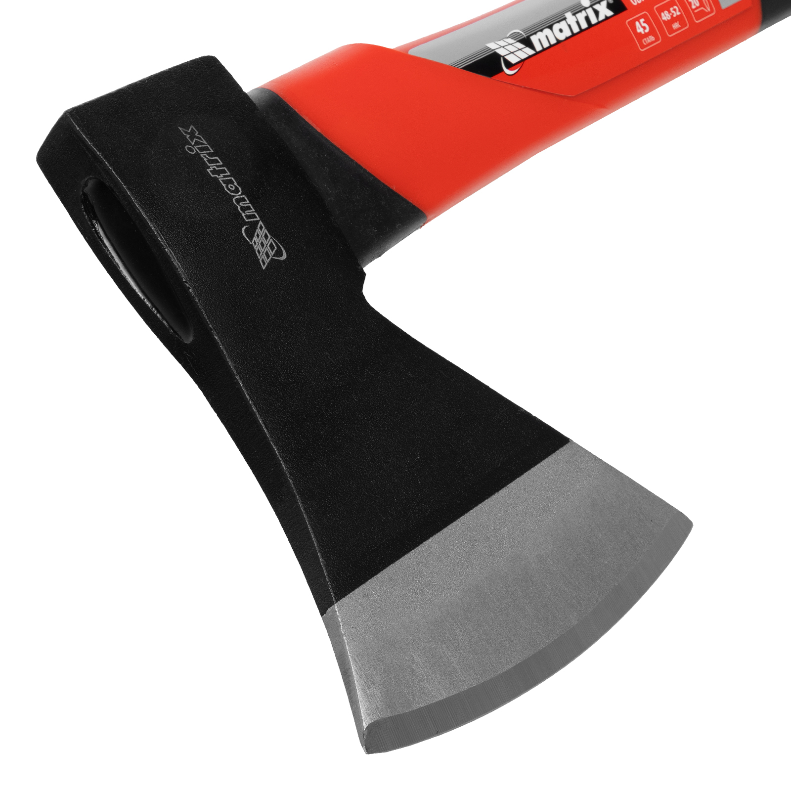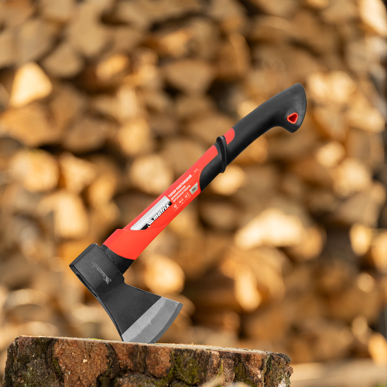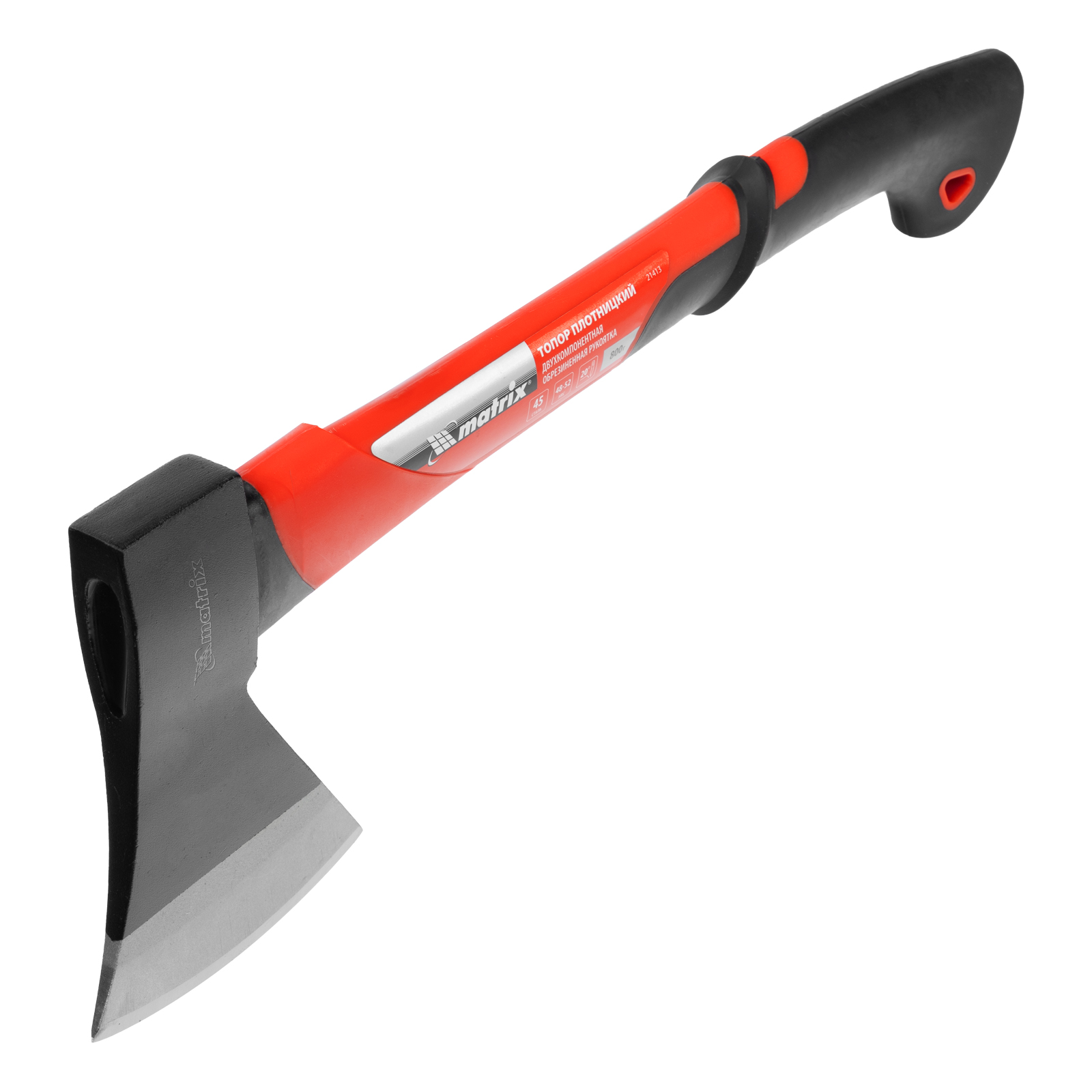 Топор Matrix 21413 длиной 450 мм, с рабочей частью весом 800 г и эргономичной фибергласовой рукояткой, используется для колки дров, заострения колышков, вырубки кустов, рубки сучьев, а также выполнения других работ. Полукруглое лезвие в сочетании с оптимальным соотношением длины и веса упрощает работу. Инструмент используется для решения бытовых задач.