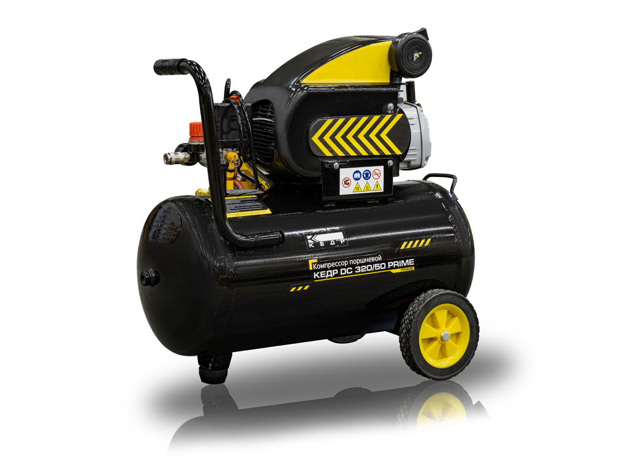 Компрессор поршневой КЕДР DC 320/50 PRIME – одноступенчатый масляный компрессор с производительностью 320 л/мин, который применяется для работ в гараже, на даче, автосервисе или небольшой мастерской. Оборудован выходом с разъемом "рапид" для подключения пневмоинструмента или установки воздушно-плазменной резки. Оснащен регулятором рабочего давления и манометром. Для защиты от попадания пыли и грязи предусмотрен защитный пластиковый кожух электродвигателя.