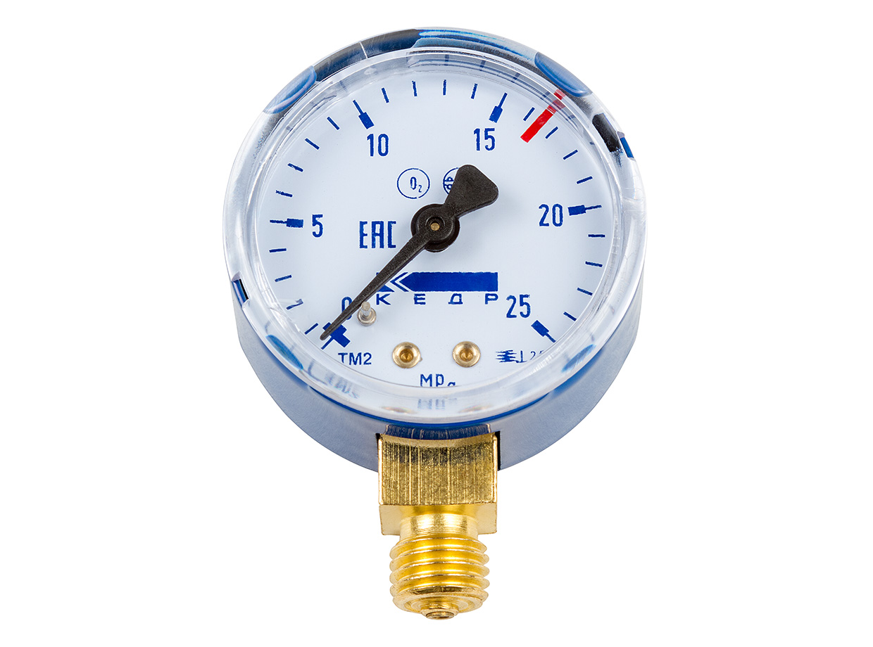 Манометр КЕДР ТМ2 Кислород, (0-25 МПа, кл.2,5, М12Х1,5) О2-У предназначен для измерения давления не агрессивных, не кристаллизующихся жидкостей, пара, газа в т.ч. кислорода.