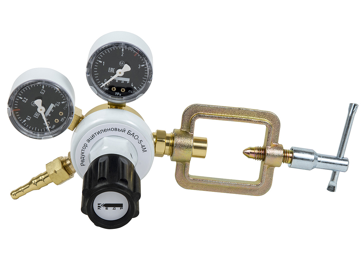 Редуктор ацетиленовый КЕДР БАО-5-4М предназначен для понижения давления газа, поступающего из баллона, и автоматического поддержания заданного рабочего давления постоянным при газопламенной обработке.