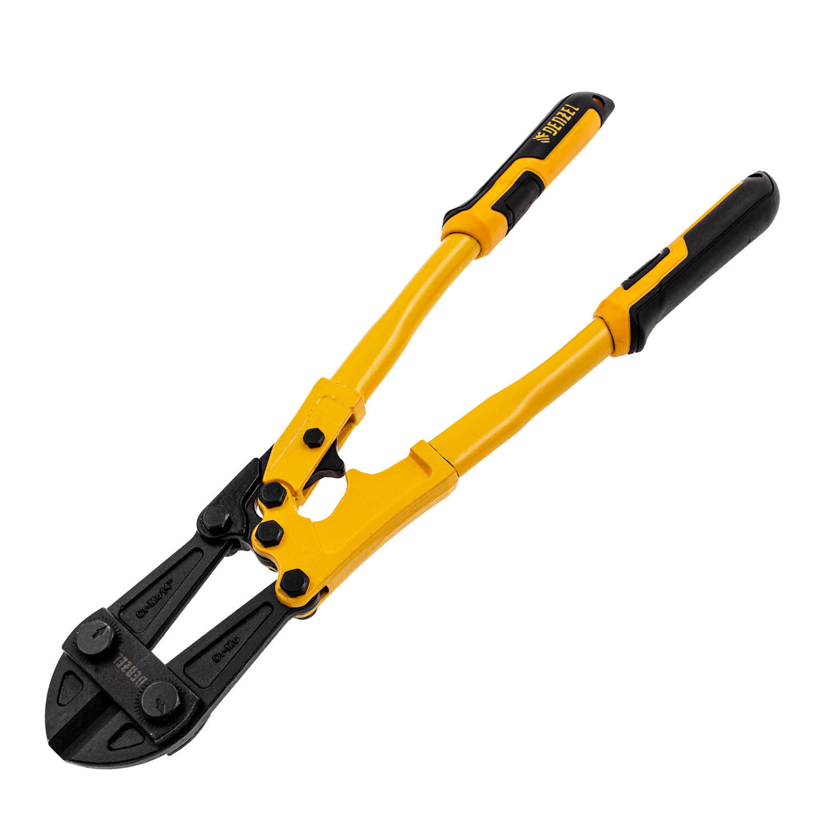 Болторез Denzel 78533 длиной 350 мм (14 дюймов), из стали Cr-Mo, предназначен для перекусывания стальных прутков диаметром 6,4 мм, болтов и шурупов, тросов, разнородной проволоки.