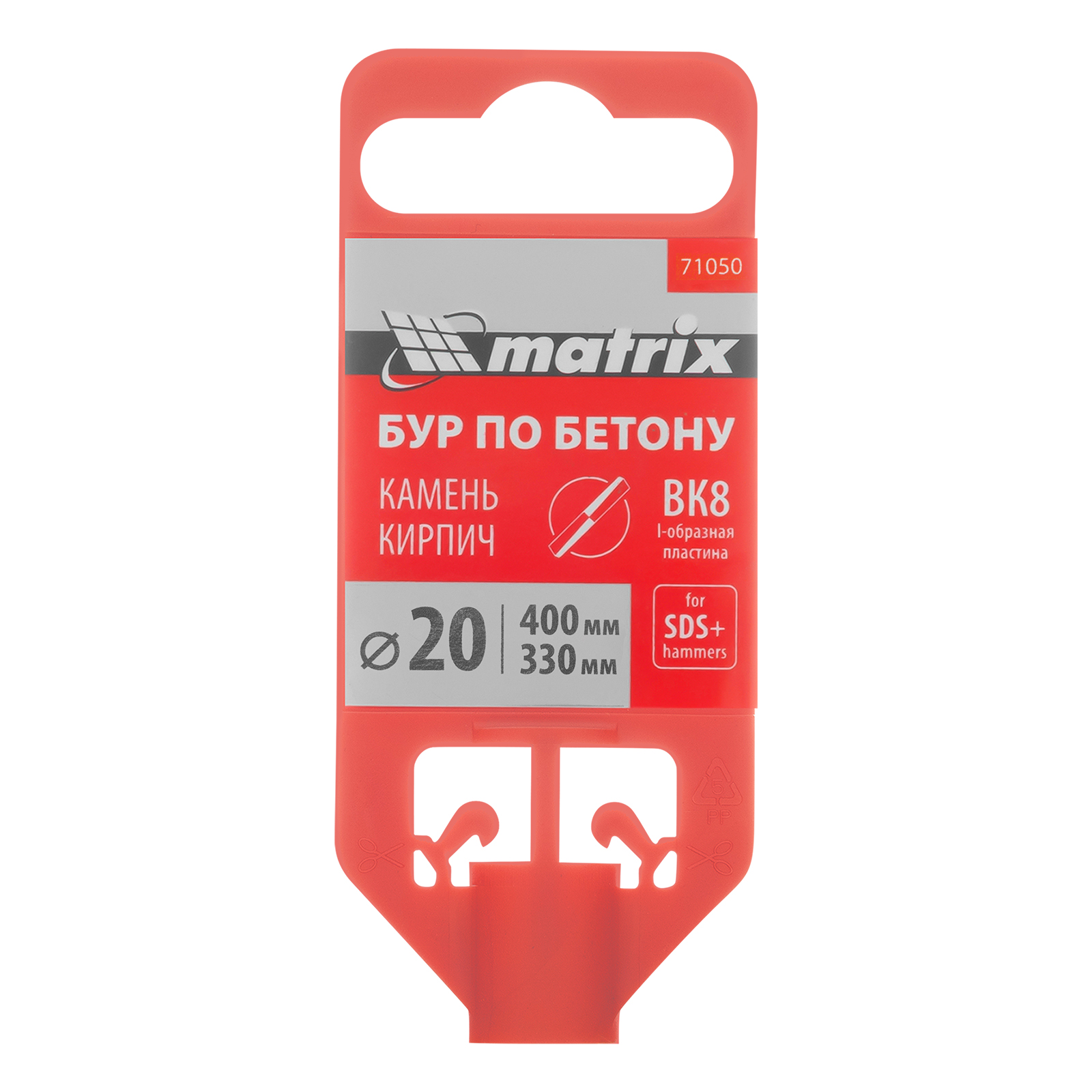 Бур по бетону Matrix 71050, 20 х 400 мм, SDS PLUS предназначен для установки на перфоратор и позволяет получать отверстия диаметром 20 мм в бетоне, камне и кирпиче. Он эффективно решает поставленные задачи благодаря режущей пластине из высокотвердого сплава карбида вольфрама ВК8 твердостью 80-90 HRC.