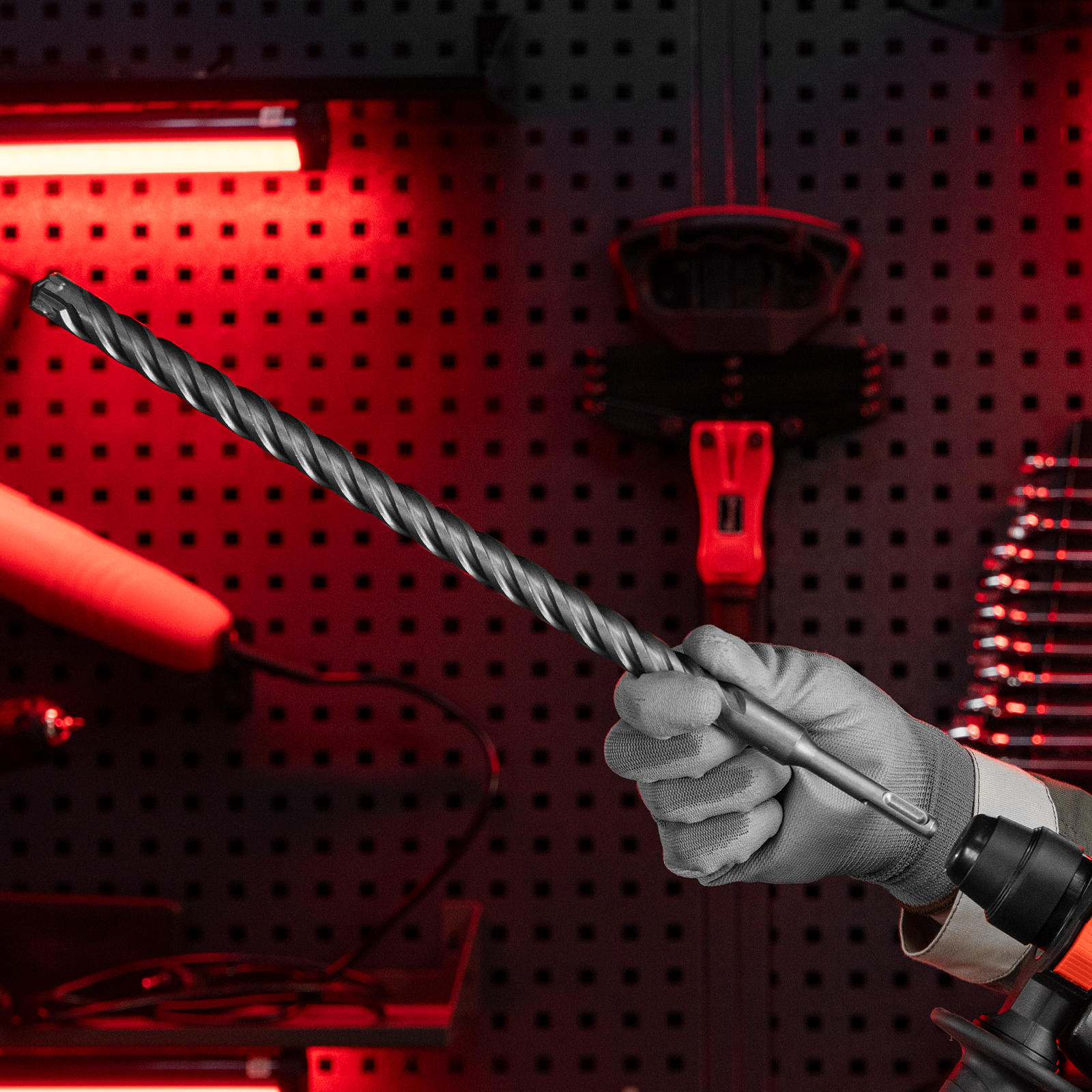 - Быстрая установка — хвостовик SDS-plus надежно фиксируется в патроне перфоратора.
