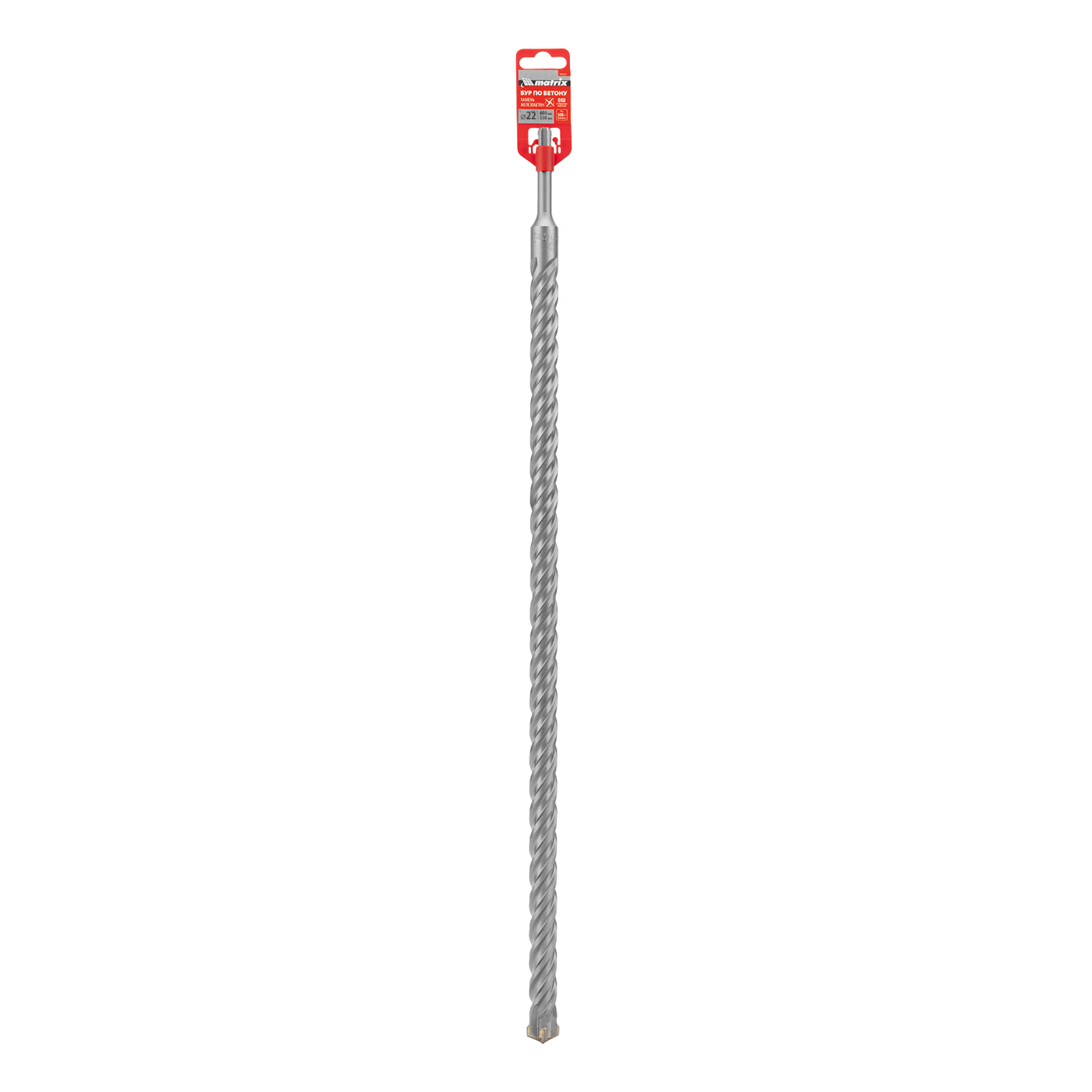 Бур по бетону Matrix 70925 длиной 600 мм, с хвостовиком SDS-plus и крестовой пластиной, предназначен для получения отверстий диаметром 22 мм в бетоне, камне и кирпиче. Крестовая пластина обеспечивает эффективную работу с твердыми материалами, в том числе армированным бетоном. Бур устанавливается в патрон перфоратора и используется во время проведения строительных работ.