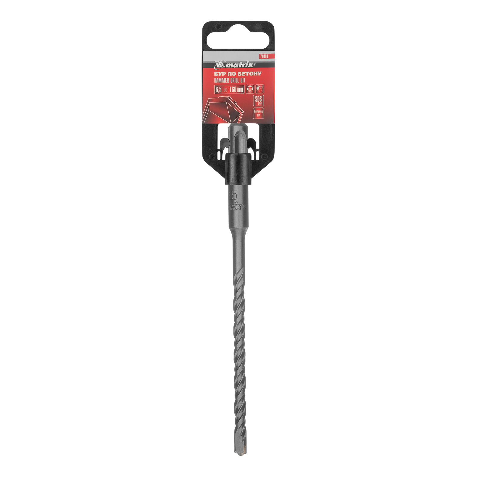 Бур по бетону Matrix 71010, 6,5 х 160 мм, SDS PLUS предназначен для установки на перфоратор и позволяет получать отверстия диаметром 6,5 мм в бетоне, камне и кирпиче. Он эффективно решает поставленные задачи благодаря режущей пластине из высокотвердого сплава карбида вольфрама ВК8 твердостью 80-90 HRC.