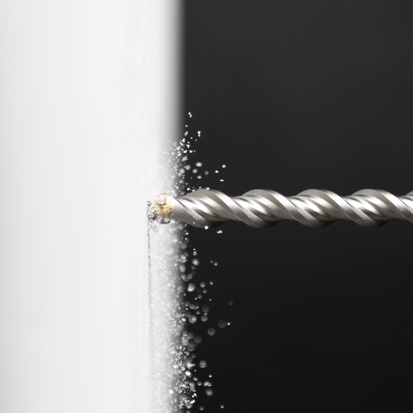 - Эффективный отвод шлама — двойная спираль и канавка с дополнительным желобом обеспечивают быстрое удаление пыли, что предотвращает перегрев рабочей части и продлевает срок службы бура.