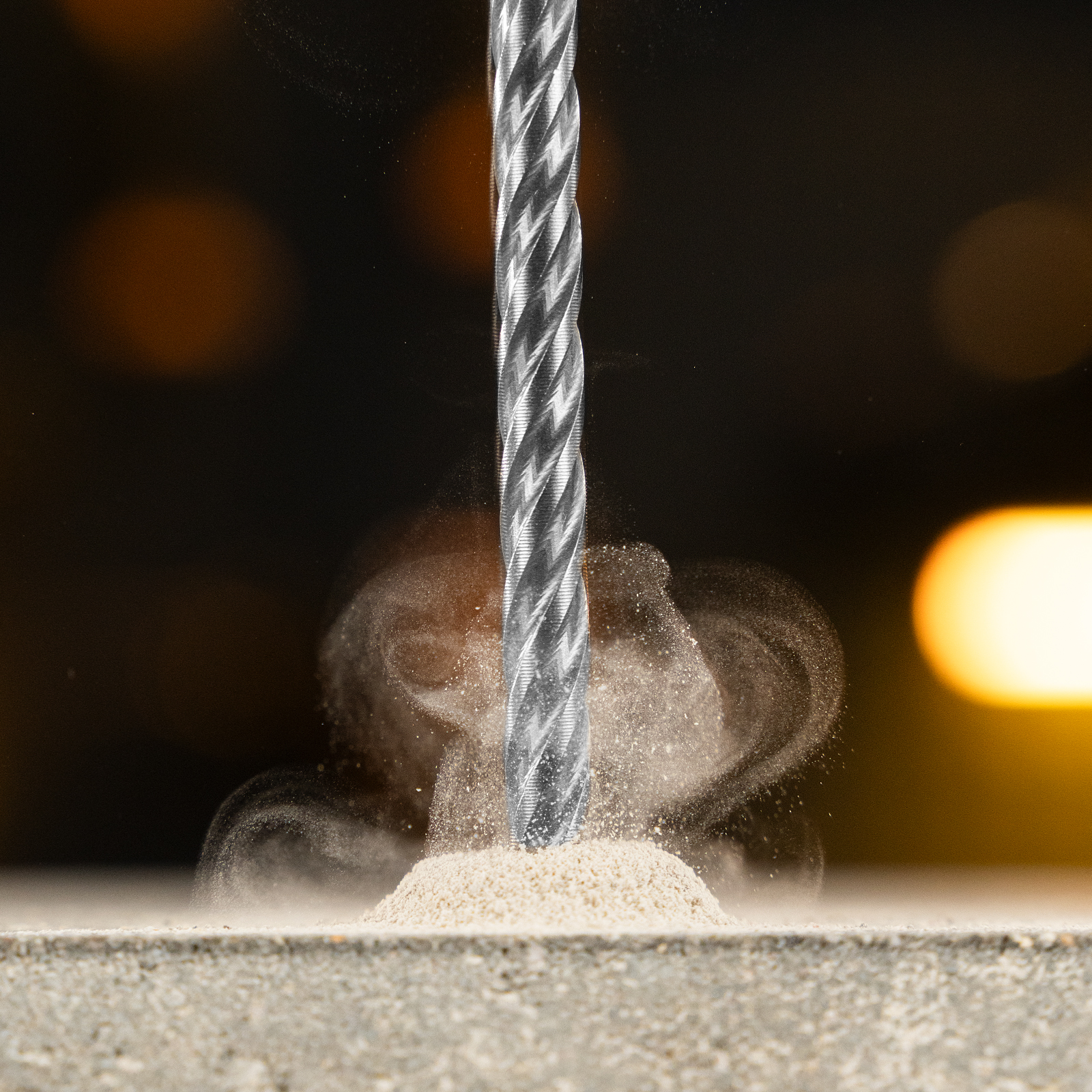 - Надежность — бур из стали 40Cr твердостью 47-55 HRC выдерживает высокие динамические нагрузки.