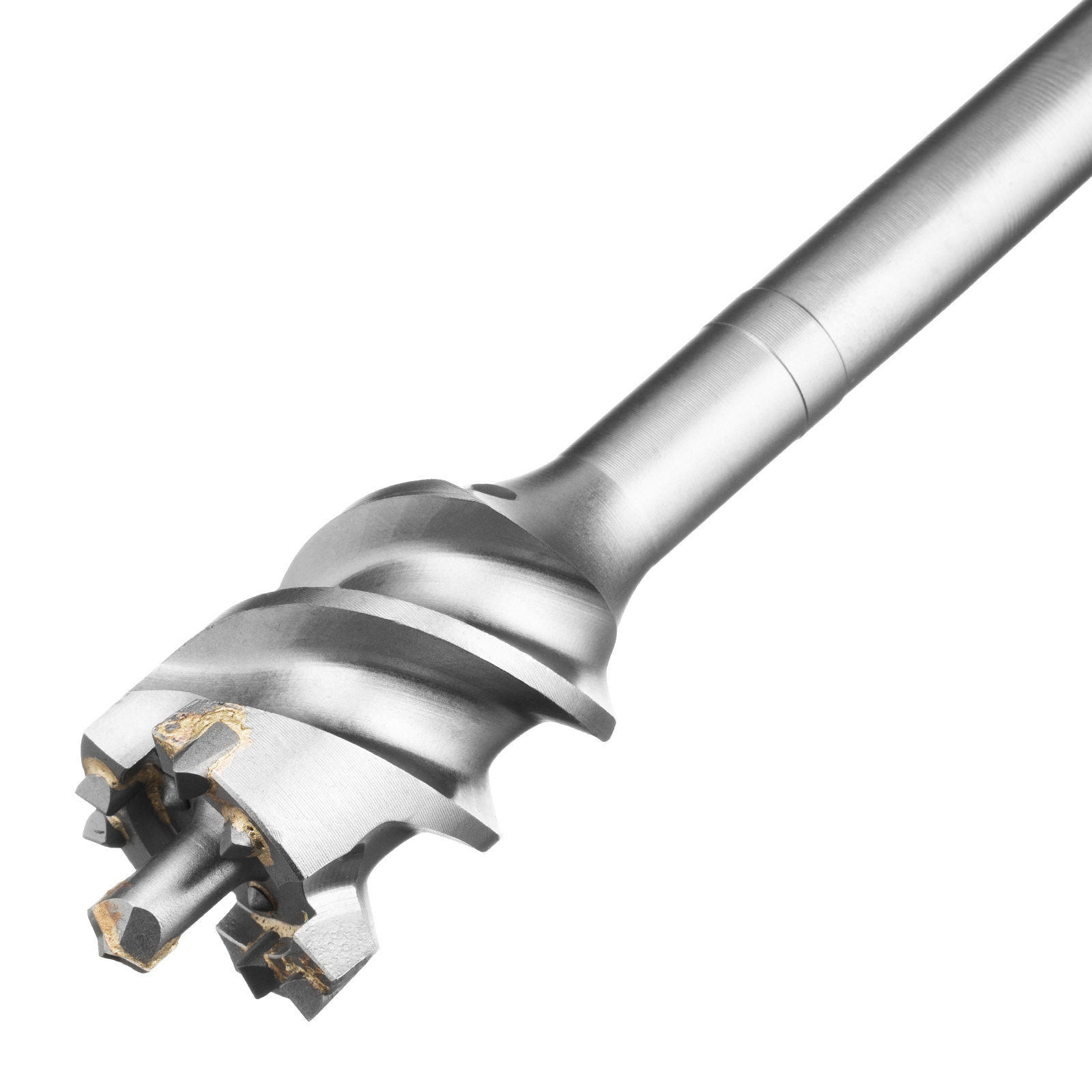 - Высокое качество сверления — цельная конструкция оснастки позволяет минимизировать радиальное и торцевое биение в процессе работы, что исключает отклонение бура от заданной оси.