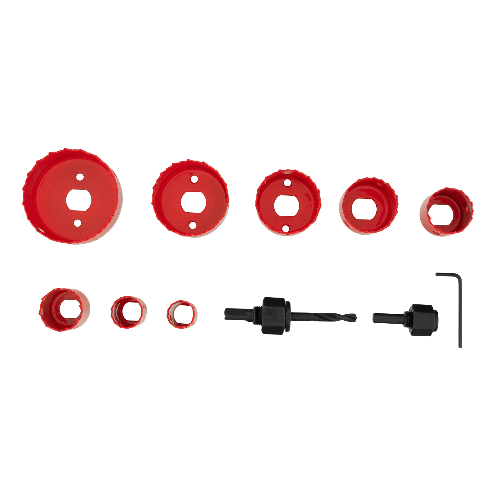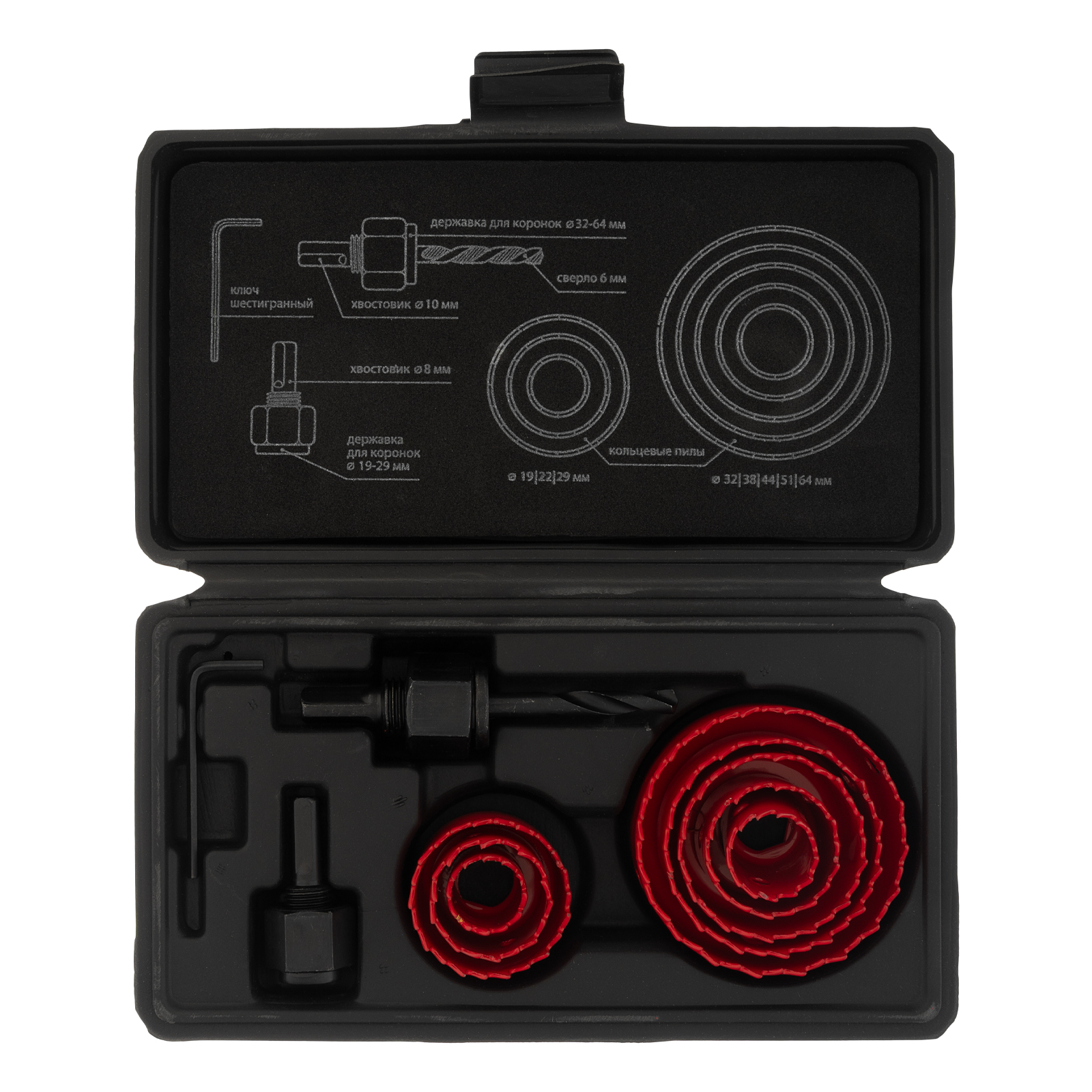 Набор кольцевых пил по дереву Matrix 70473 состоит из 11 предметов и предназначен для вырезания круглых отверстий диаметром 19-64 мм и глубиной до 27 мм. Входящие в комплект коронки подходят для работы по дереву, фанере, пластику, ламинату, гипсокартону, ДСП. Позволяют подготовить поверхность к установке розеток, светильников, выключателей, а также прокладке труб. Коронки устанавливают на электродрель. Набор пригодится во время ремонта и будет полезен в быту.
