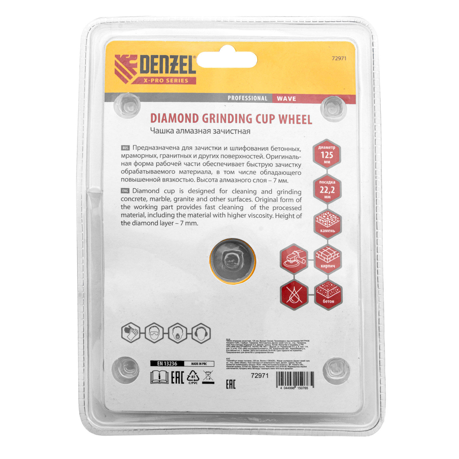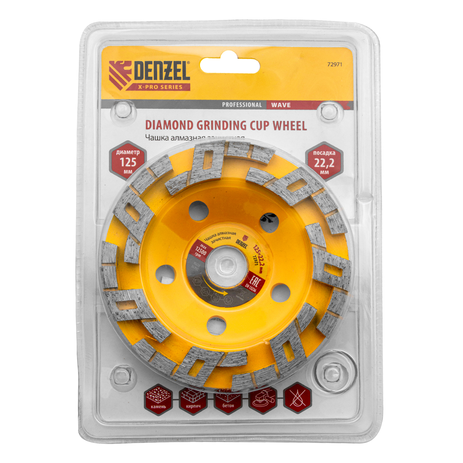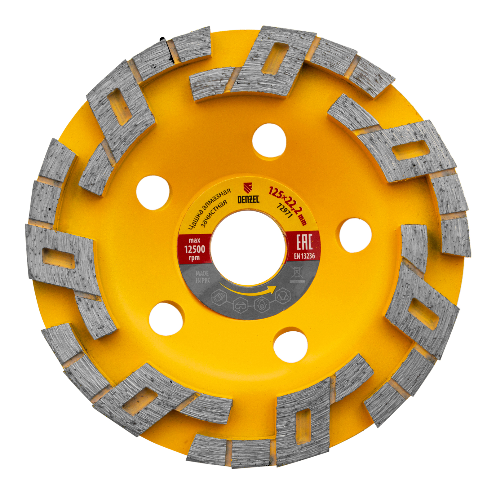 Алмазная зачистная чашка Denzel «Волна» 72971 диаметром 125 мм и посадочным отверстием 22,2 мм — оснастка для углошлифовальных машин. Подходит для чернового шлифования бетонных, каменных, кирпичных, мраморных и гранитных поверхностей. В этом случае для удаления наплывов, зачистки стыков и швов потребуется несколько проходов. Чашку также используют для придания гладкости обрабатываемой поверхности — алмазные сегменты особой формы легко справляются с мелкими неровностями, работая мягко и плавно. Высокая плотность алмазов в рабочем слое и оптимально подобранная связка обеспечивают эффективность насадки при обработке различных материалов. Чашка рекомендована для профессионального использования.
