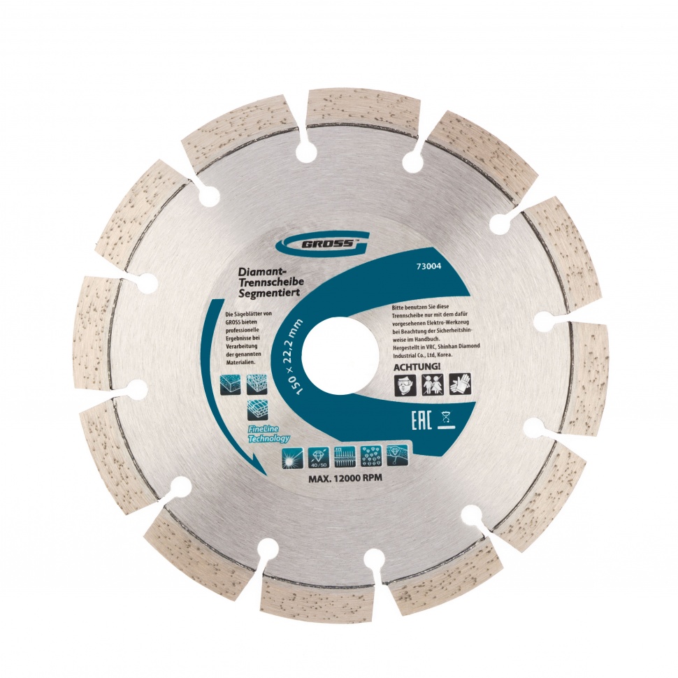 Алмазный диск Gross 73004 диаметром 150 х 22,2 мм, с лазерной приваркой сегментов, предназначен для сухой резки бетона, в том числе свежего, кирпича, песчаника и гранита. Посадочный диаметр 22,2 мм позволяет использовать диск в качестве оснастки для УШМ. Сегментное строение снижает риск деформации и обеспечивает быстрое сухое резание без необходимости водяного охлаждения. Благодаря оптимально подобранной связке диск выдерживает высокие нагрузки при выполнении большого объема работ. Подходит как для интенсивного бытового, так и для профессионального применения.