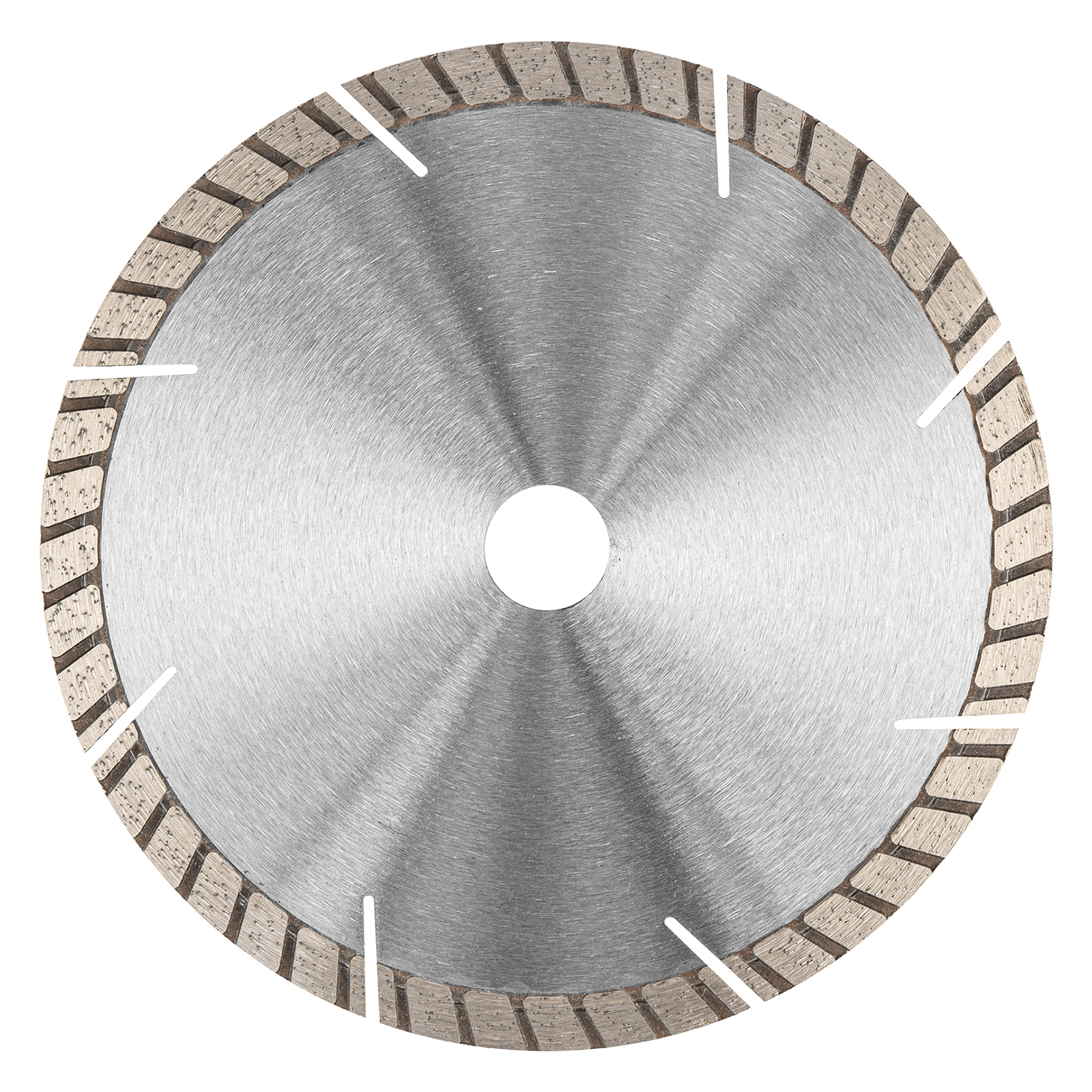 - Эффективная работа — благодаря турбо-сегментной форме диск быстро режет материалы, в т.ч. армированный бетон, водяное охлаждение не требуется.