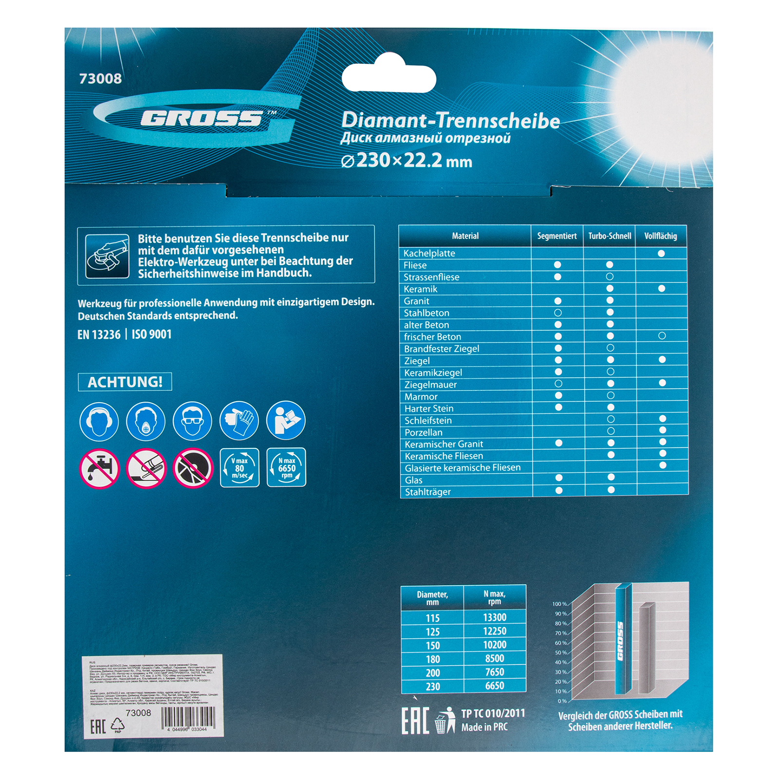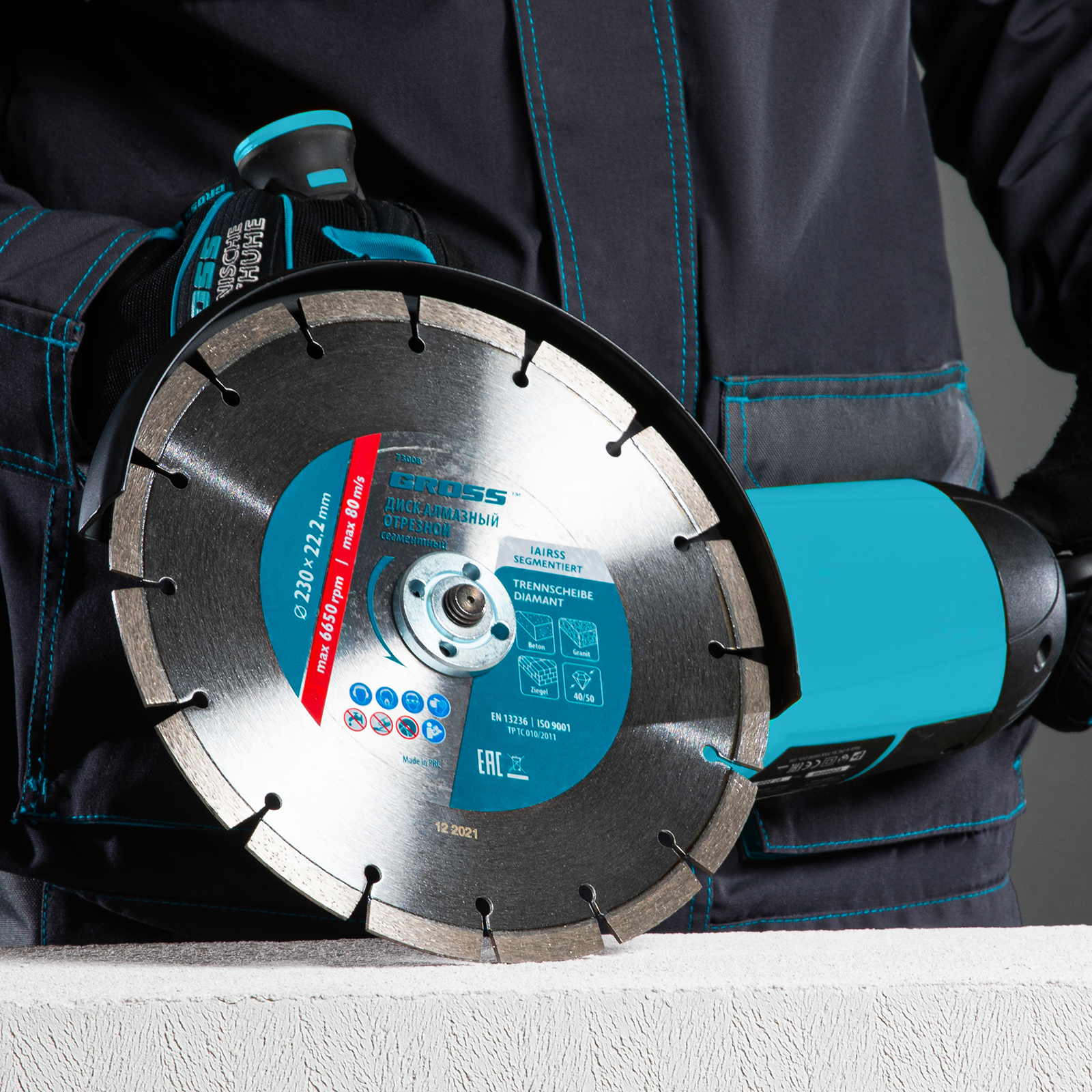 Алмазный диск Gross 73008 диаметром 230 х 22,2 мм, с лазерной приваркой сегментов, предназначен для сухой резки бетона, в том числе свежего, кирпича, песчаника и гранита. Посадочный диаметр 22,2 мм позволяет использовать диск в качестве оснастки для УШМ. Сегментное строение снижает риск деформации и обеспечивает быстрое сухое резание без необходимости водяного охлаждения. Благодаря оптимально подобранной связке диск выдерживает высокие нагрузки при выполнении большого объема работ. Подходит как для интенсивного бытового, так и для профессионального применения.