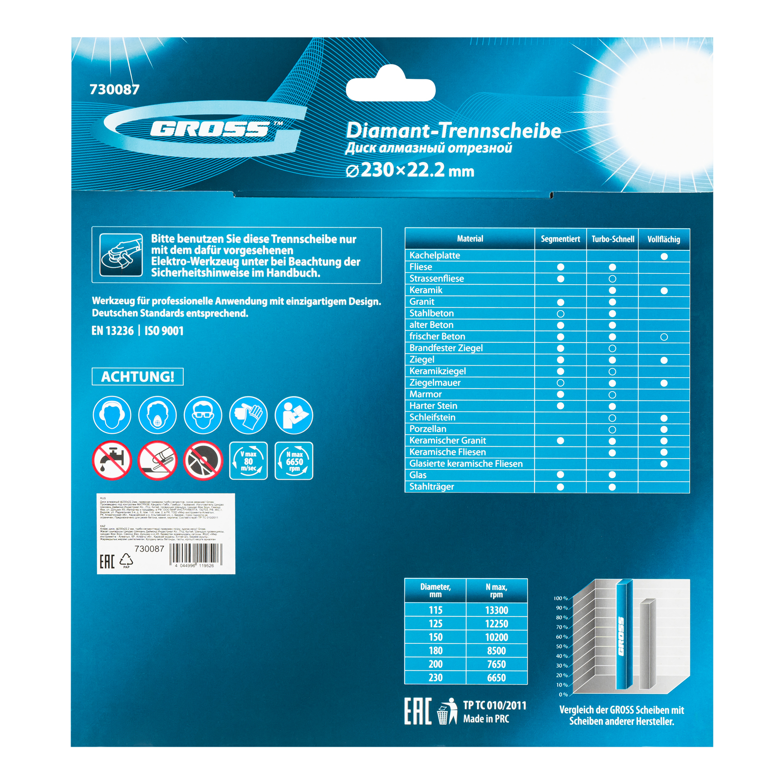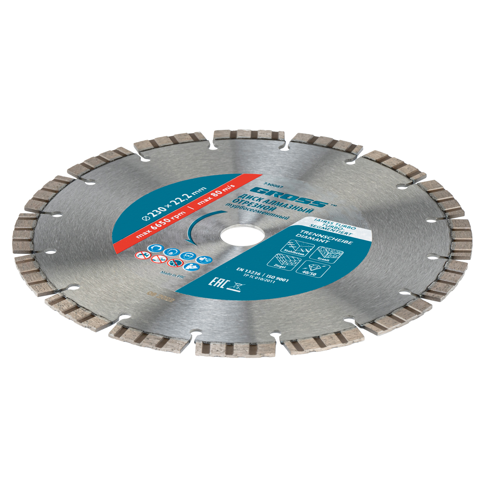 - Надежная фиксация алмазного слоя — лазерная приварка сегментов обеспечивает диску высокую стойкость к нагрузкам.