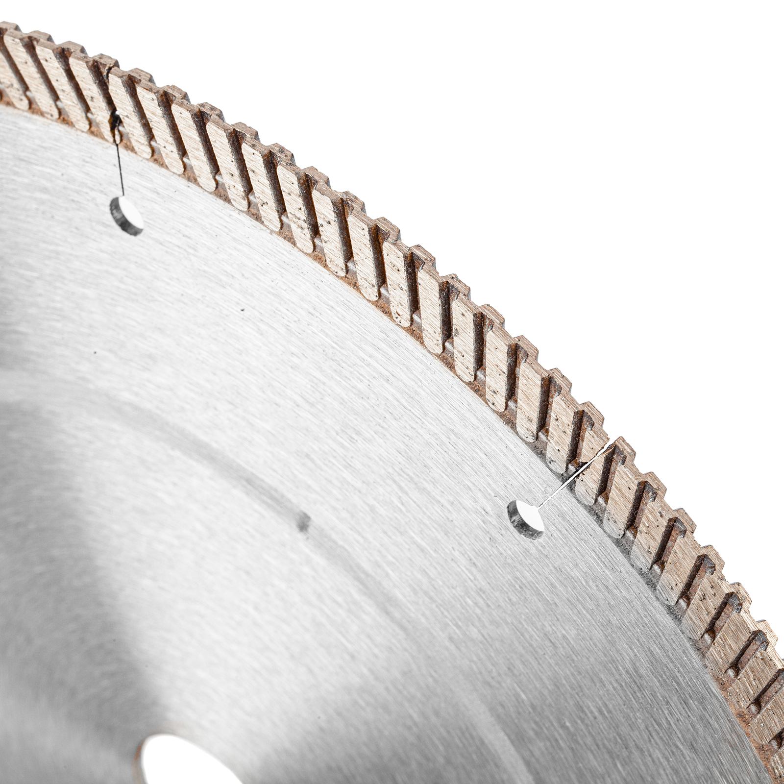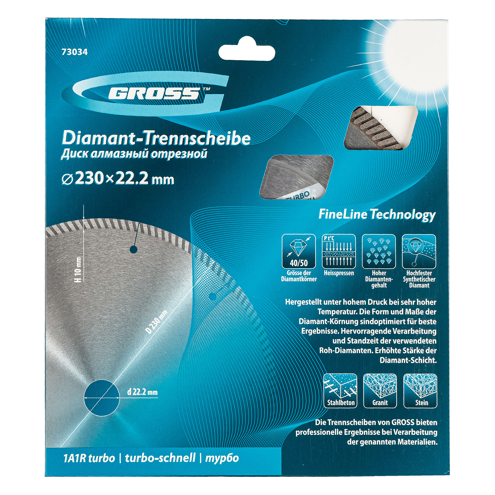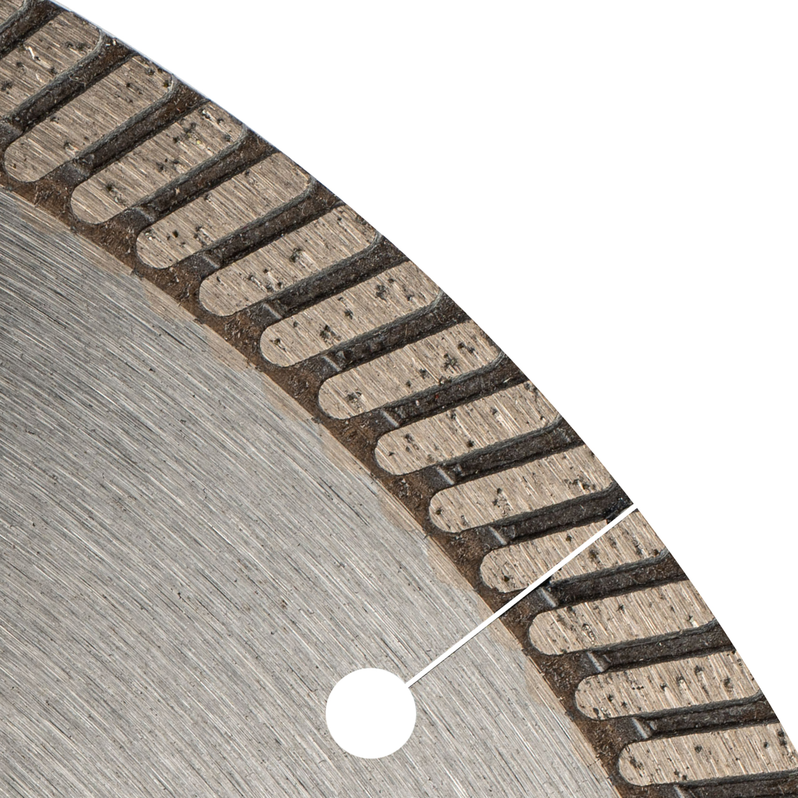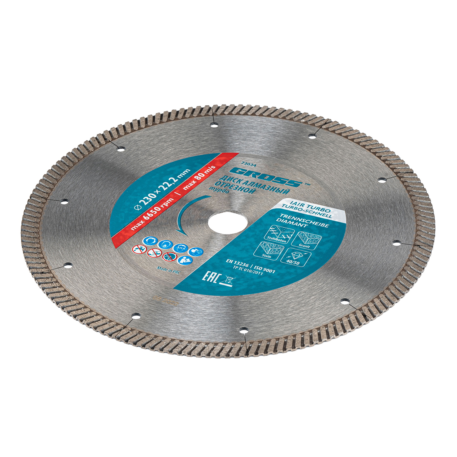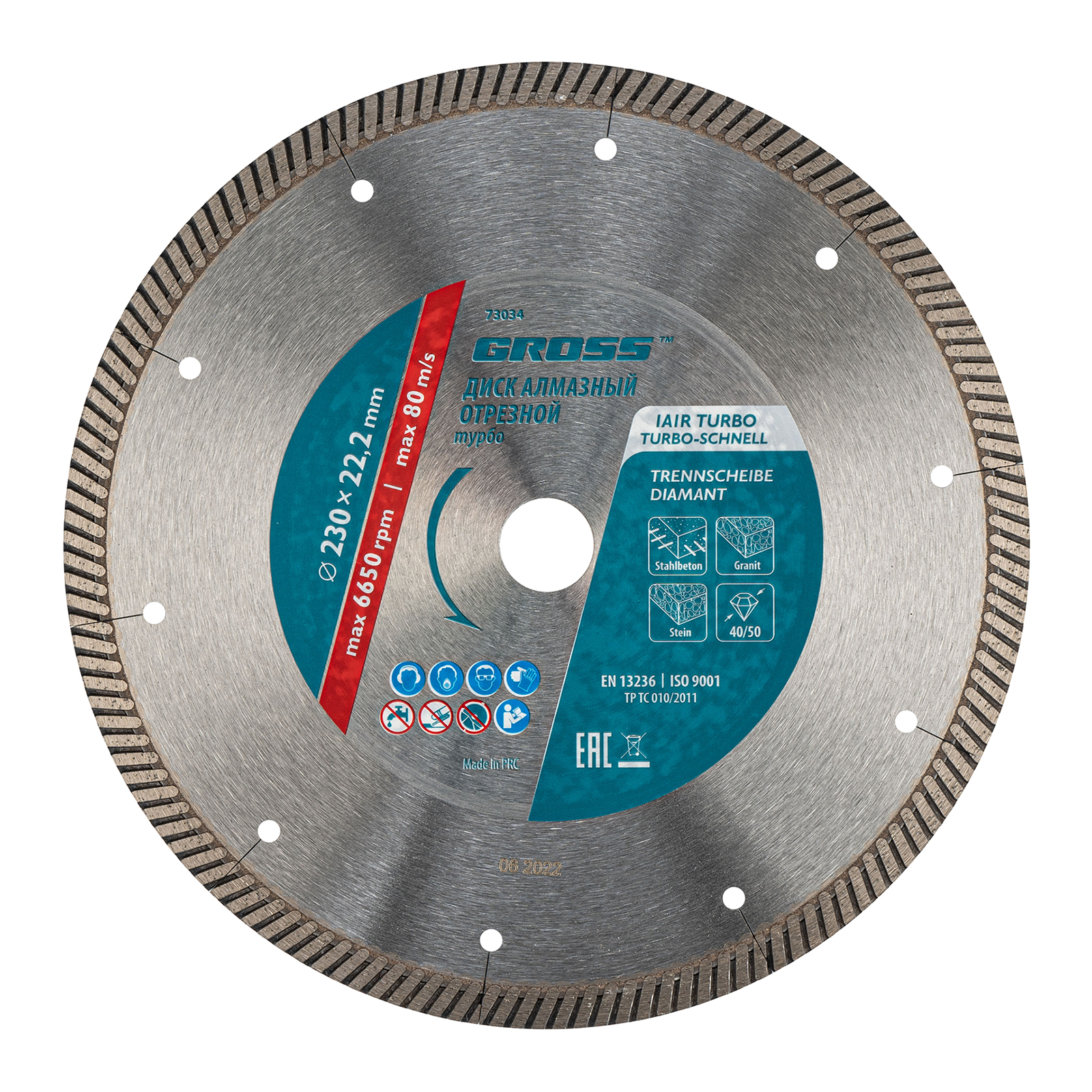 Алмазный диск Gross 73034 диаметром 230 х 22,2 мм, турбо с лазерной перфорацией, применяется для сухой резки твердых материалов: бетона, в том числе свежего, железобетона, кирпича, гранита, камня и песчаника. Работа с разными типами материалов возможна благодаря оптимально подобранной металлической связке. Инструмент используется в качестве расходника на профессиональных УШМ.