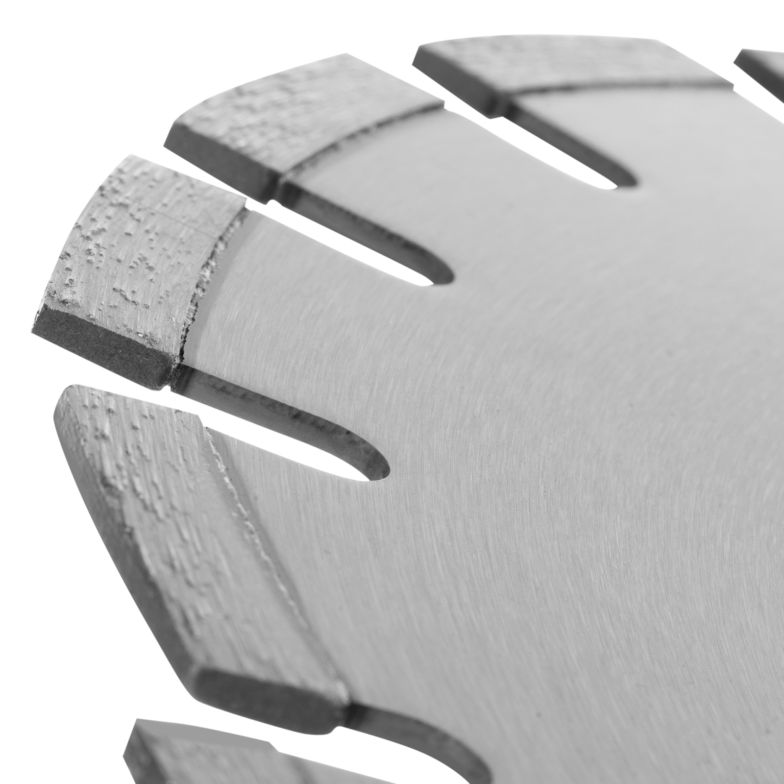 - Надежность — режущая часть закреплена методом лазерной приварки, поэтому алмазы крепко удерживаются на диске.