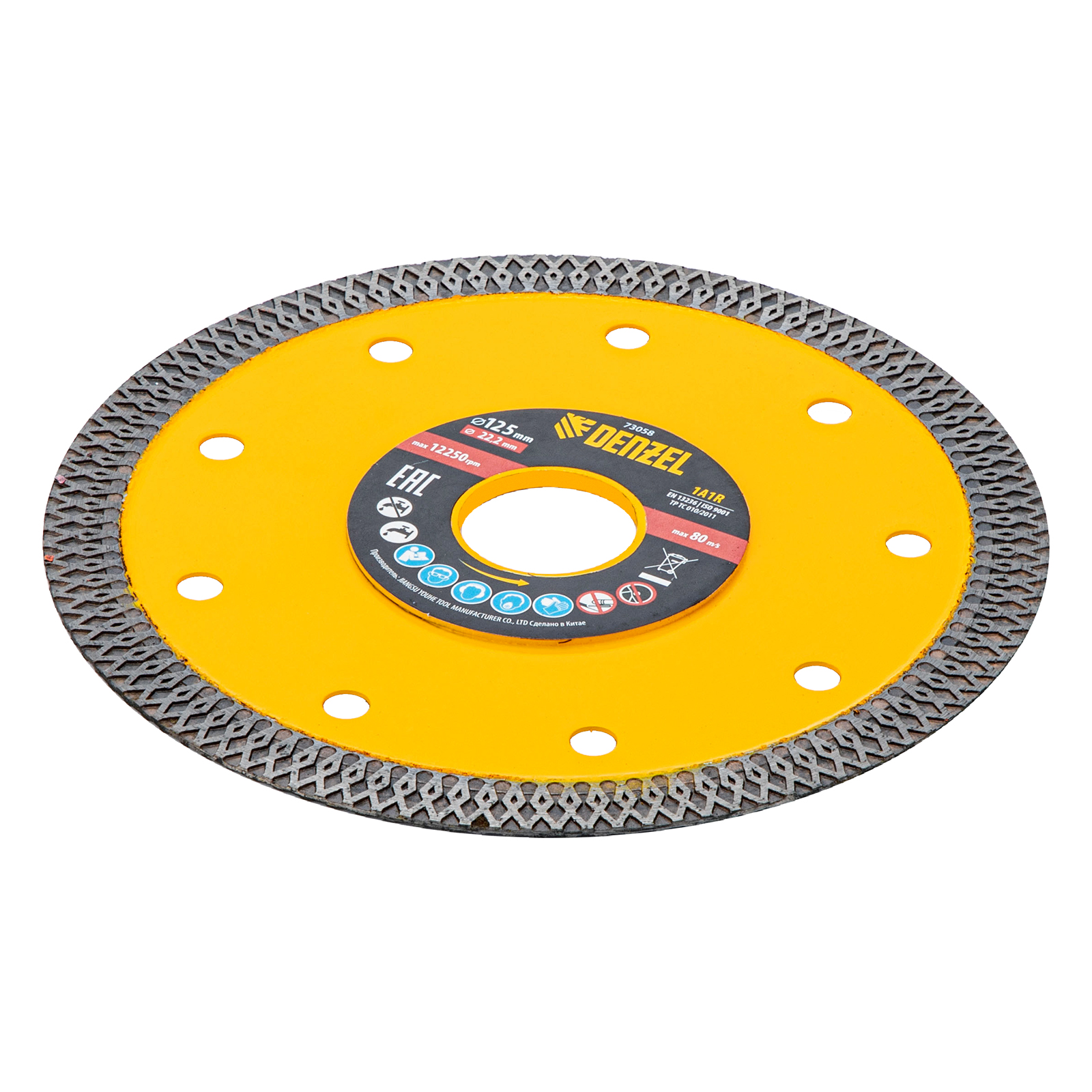 Алмазный диск ТМ Denzel "Сплошной" арт 73058, ф125 х 22,2 мм, предназначен для резания мрамора, керамогранита и керамическую плитки, камня. Устанавливается на УШМ (болгарку) или плиткорез с посадочным диаметром 22,2 мм. Высокая концентрация алмазов и супертонкая рабочая часть диска обеспечивает идеальную частоту кромок и высокую скорость реза.Особая сплошная форма режущей части позволяет использовать диск без водяного охлаждения для кратковременного реза.Диск произведен по технологии горячего прессования с увеличенной шириной режущей кромки (10мм) подходит для профессионального использования и больших объемов работ. При интенсивной резке необходимо использовать водяное охлаждение.