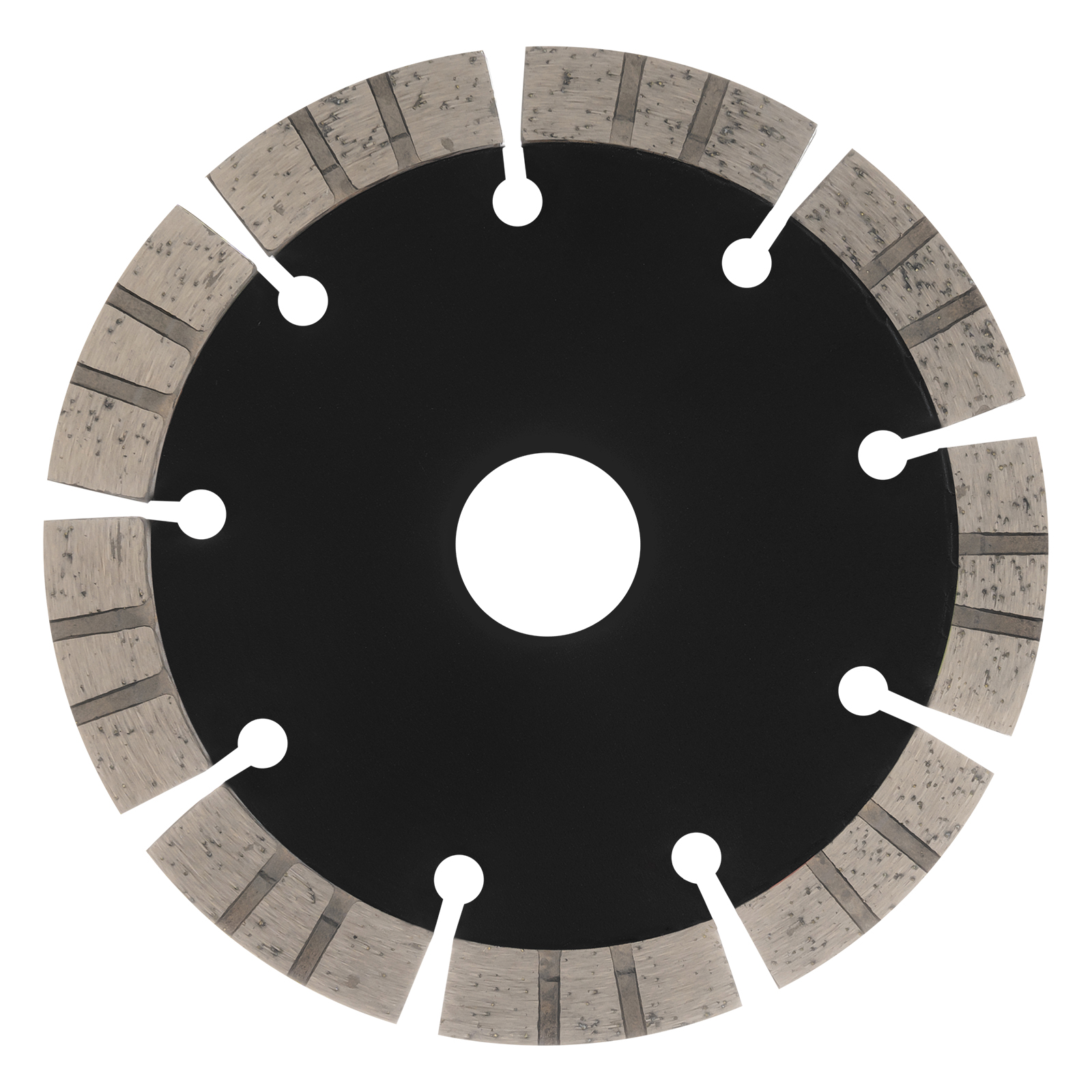 Алмазный отрезной диск Denzel 731010 диаметром 125 x 22,2 мм, с сегментной рабочей частью и слоем сверхтвердых алмазов HWD92, предназначен для сухого резания бетона, камня, кирпича, гранита. Используется с углошлифовальной машиной (УШМ) или штроборезом, поддерживающими частоту вращения 12250 об/мин.