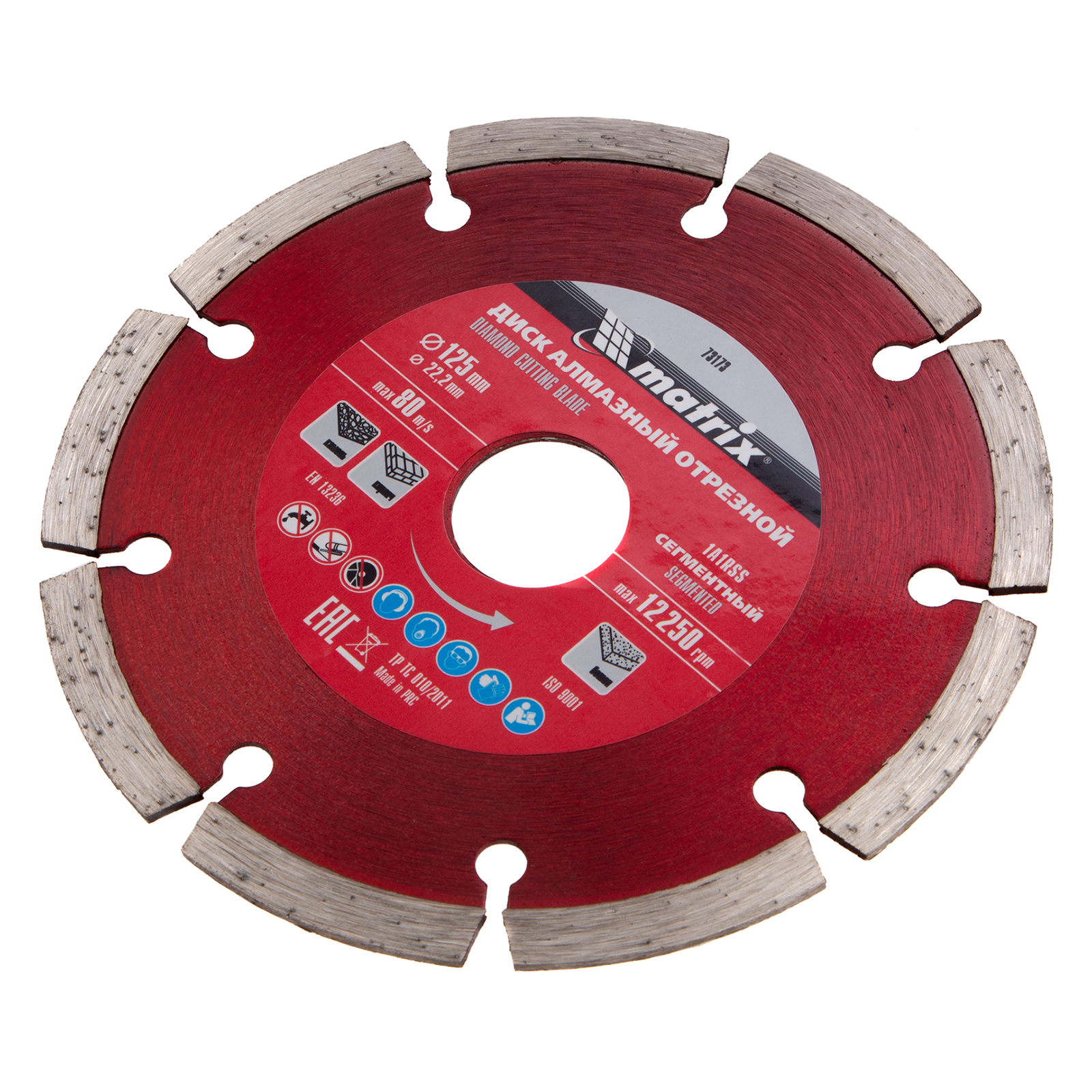 Алмазный отрезной сегментный диск Matrix 73173 диаметром 125 х 22,2 мм предназначен для сухой резки натурального и искусственного камня, кирпича, свежего и твердого бетона. Применяется с углошлифовальными машинами соответствующего типоразмера. Благодаря высокой скорости реза диск позволяет выполнять работы большого объема. Он пригодится на небольших строительных площадках и будет идеальным помощником при решении бытовых задач.