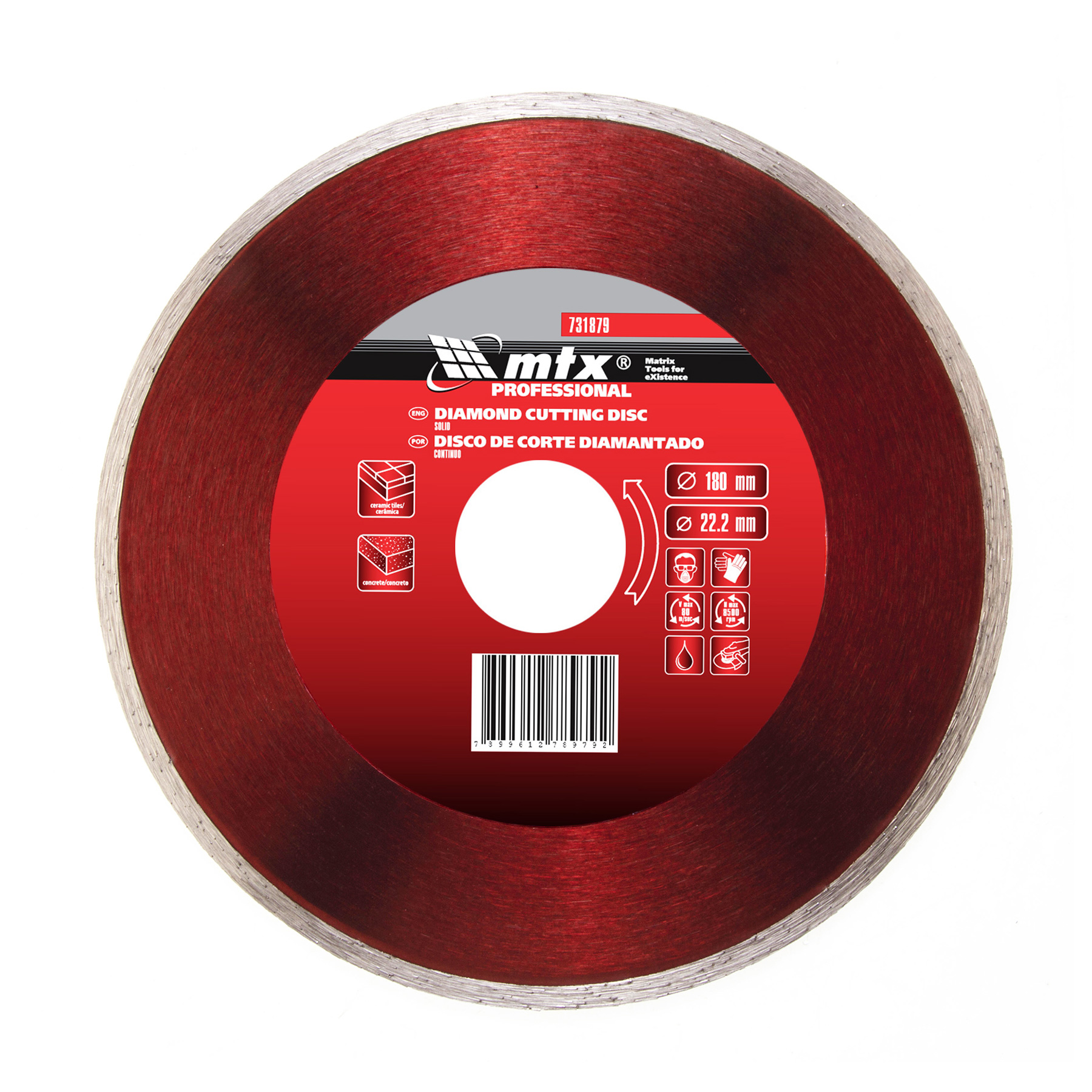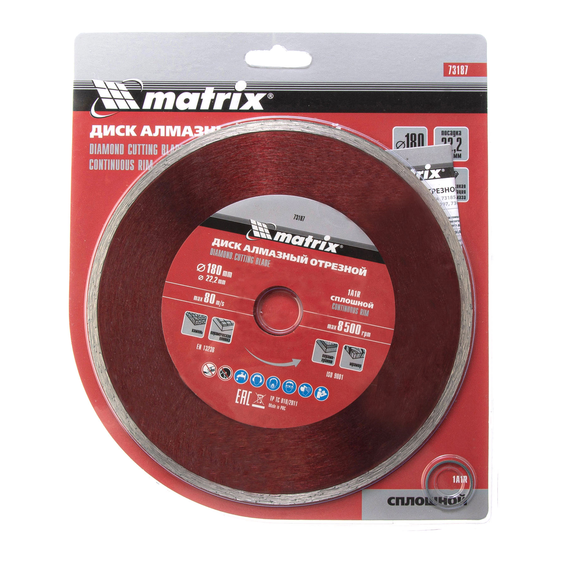 Отрезной алмазный сплошной диск Matrix 73187 диаметром 180 х 22,2 мм предназначен для мокрой резки мрамора, керамической плитки, керамогранита, натурального или искусственного камня. Устанавливается на углошлифовальную машину или плиткорез с посадочным диаметром 22,2 мм. Благодаря использованию водяного охлаждения улучшается качество реза, а также продлевается срок службы диска.