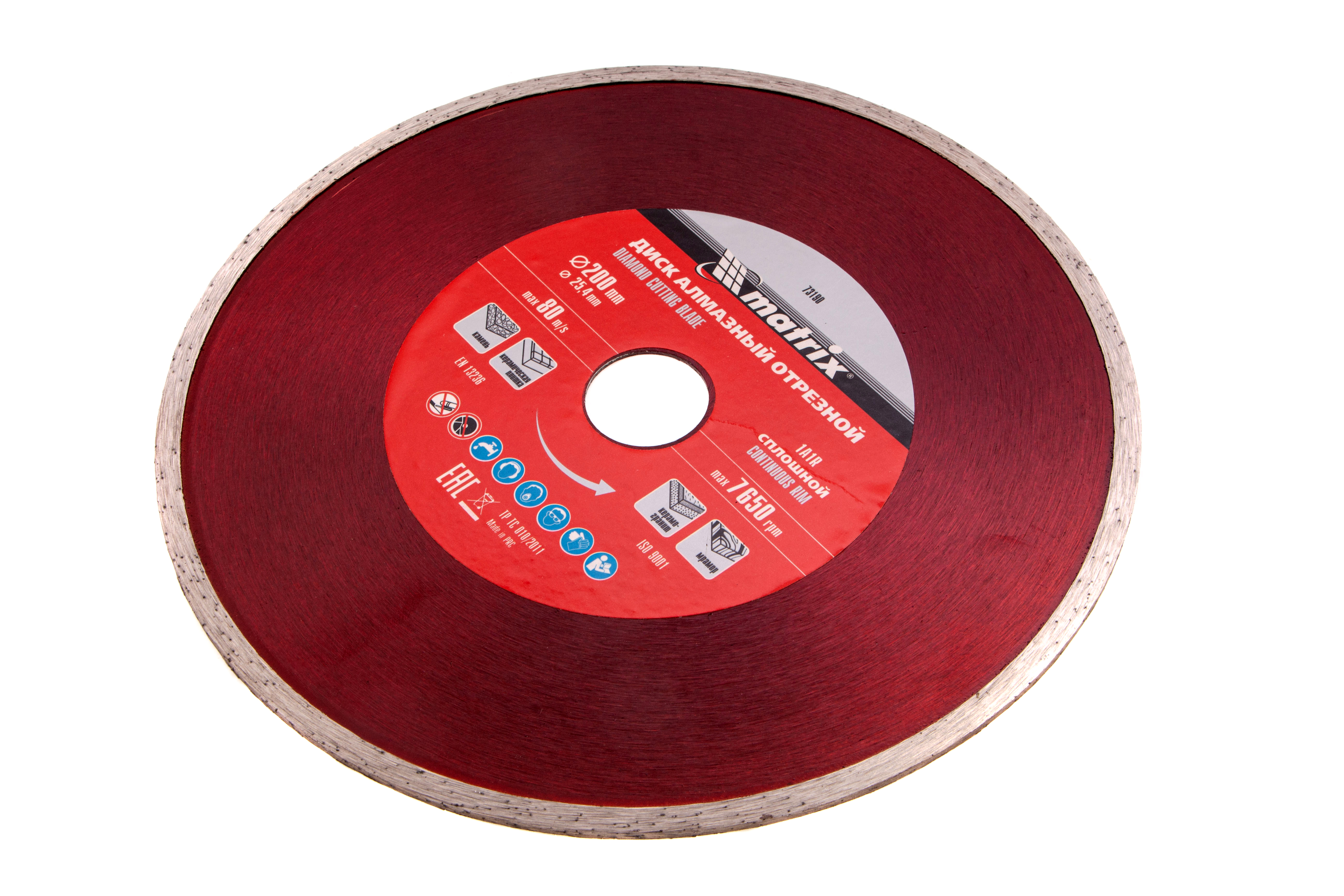 Отрезной алмазный сплошной диск Matrix 73190 диаметром 200 х 25,4 мм предназначен для мокрой резки мрамора, керамической плитки, керамогранита, натурального или искусственного камня. Устанавливается на углошлифовальную машину или плиткорез с посадочным диаметром 25,4 мм. Благодаря использованию водяного охлаждения улучшается качество реза, а также продлевается срок службы диска.