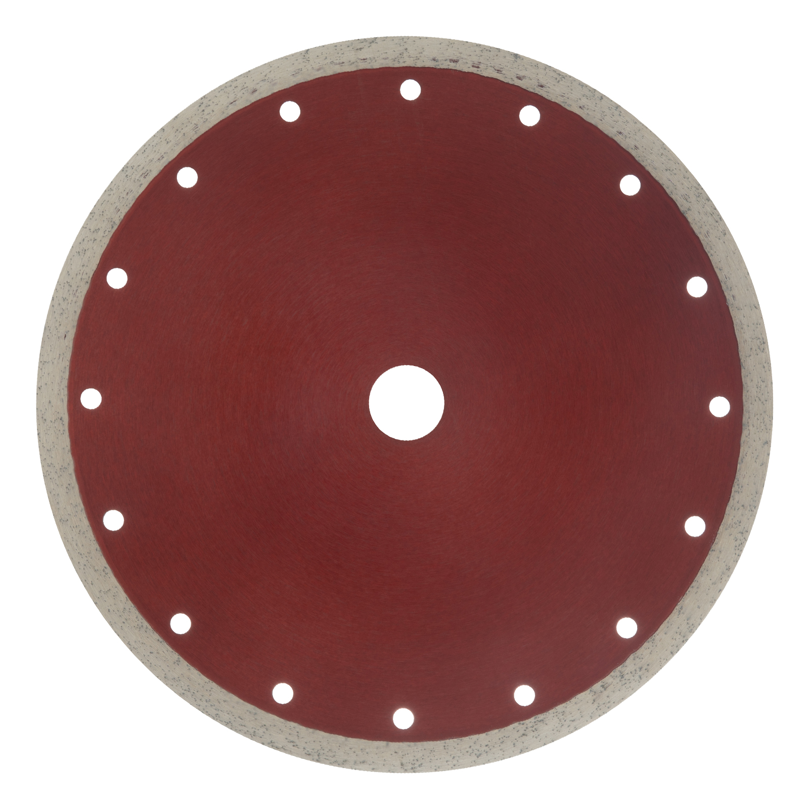 - Сплошная форма и перфорированный корпус позволяют добиться высокого качества реза и предотвращают появление сколов.