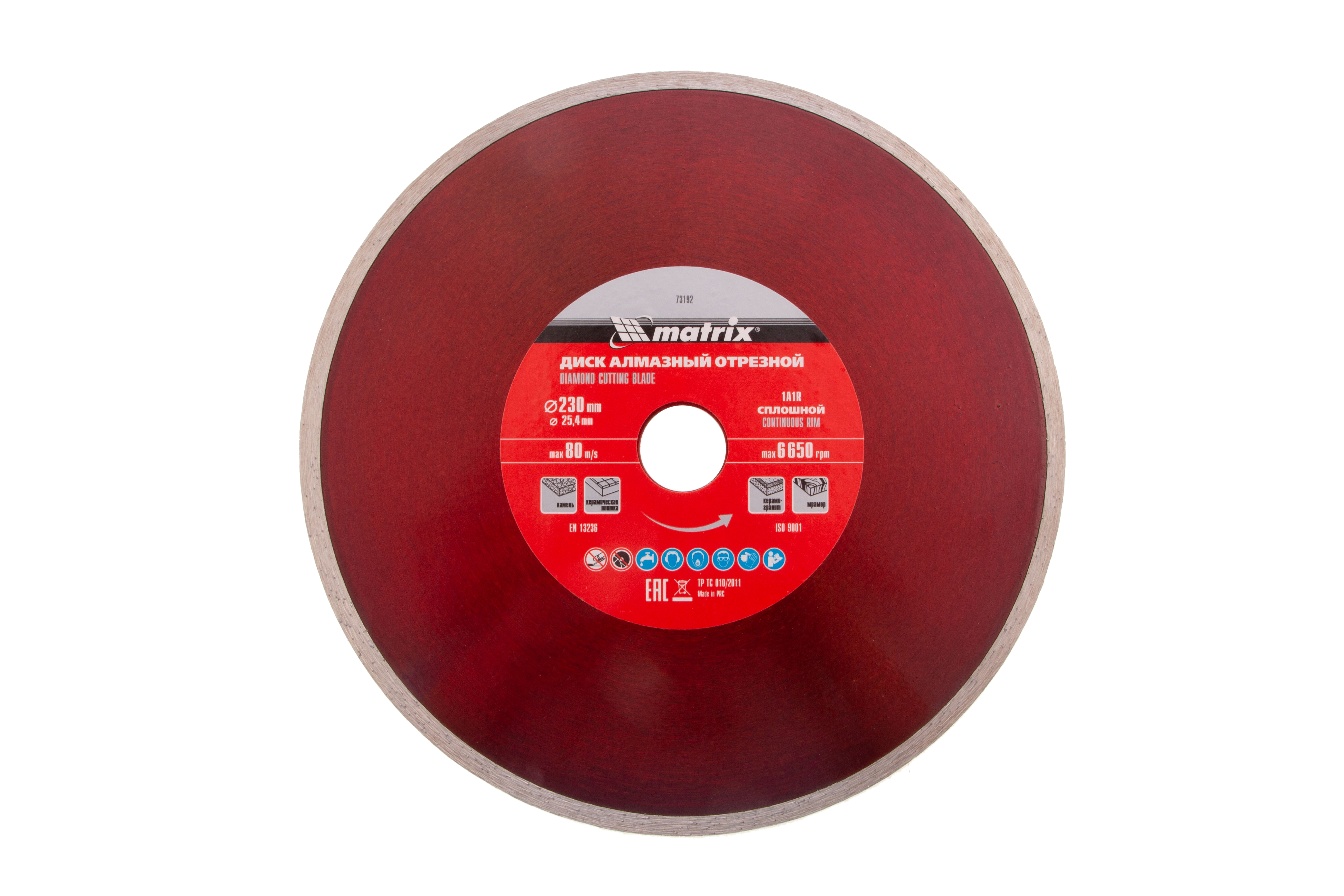 Отрезной алмазный сплошной диск Matrix 73192 диаметром 230 х 25,4 мм предназначен для мокрой резки мрамора, керамической плитки, керамогранита, натурального или искусственного камня. Устанавливается на углошлифовальную машину или плиткорез с посадочным диаметром 25,4 мм. Благодаря использованию водяного охлаждения улучшается качество реза, а также продлевается срок службы диска.