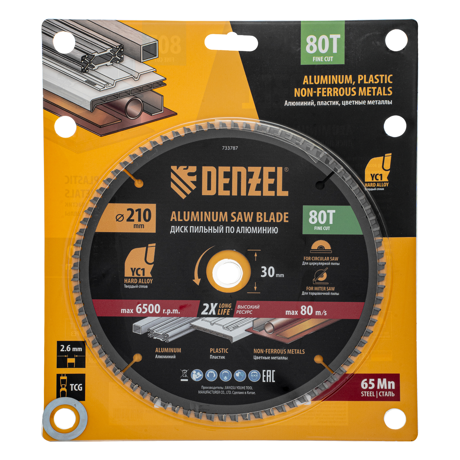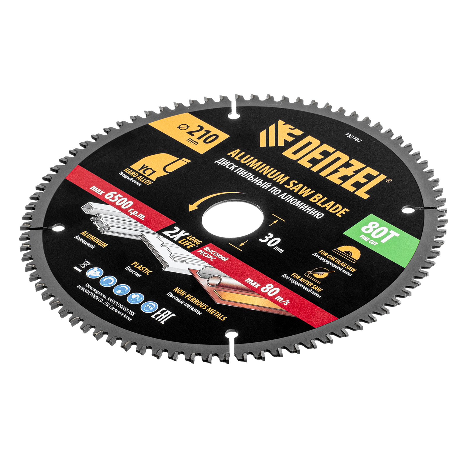 Пильный диск Denzel 733787 диаметром 210 x 30 мм, с 80 зубьями, предназначен для точного распиливания заготовок из алюминия, пластика, цветных металлов. Устанавливается на циркулярную или торцовочную пилу, также возможно использование с распиловочным станком. Зубья трапециевидно-плоского типа (TCG) с отрицательным углом заточки обеспечивают ровный рез без сколов. В комплект поставки входит переходное кольцо 30/20 мм, позволяющее изменить посадочный диаметр при необходимости.