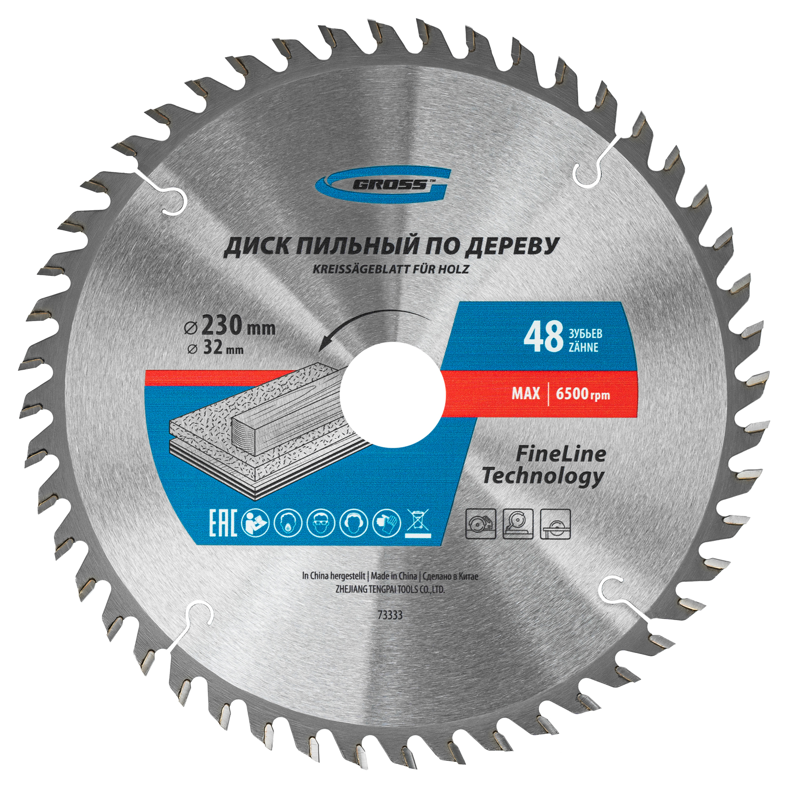 - Высокое качество работ — 48 мелких зубьев с режущими кромками, прошедшими многоступенчатую автоматическую заточку, обеспечивают точный и чистый рез.