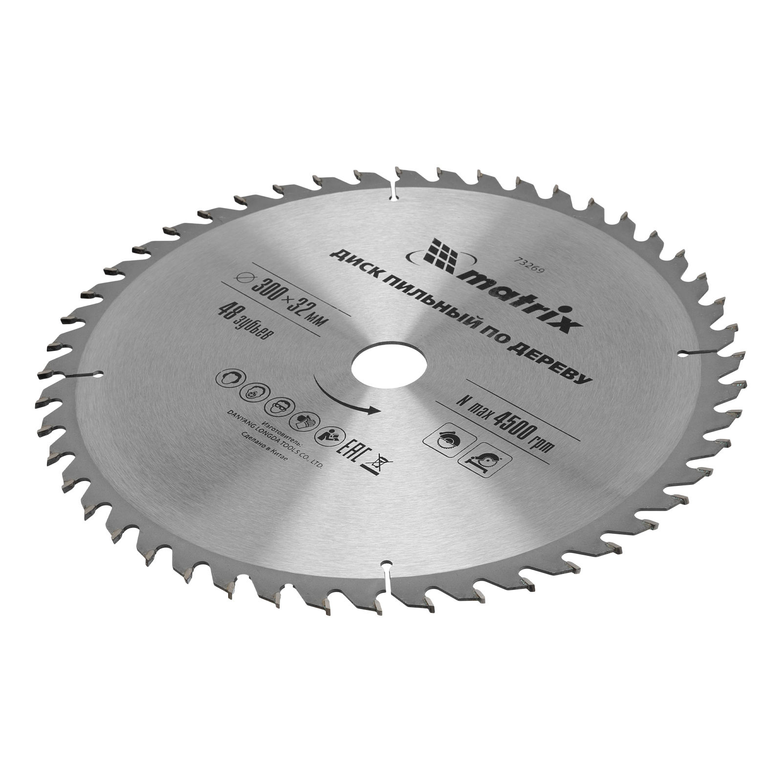 Пильный диск по дереву Matrix 73269 диаметром 300 х 32 мм, с 48 зубьями, — оснастка для циркулярных и торцовочных пил с соответствующим посадочным и внешним диаметром. Используется преимущественно для поперечного реза материалов из мягкой и твердой древесины, ДСП, ДВП, фанеры, столярных плит. Диск подходит для бытового и профессионального применения.
