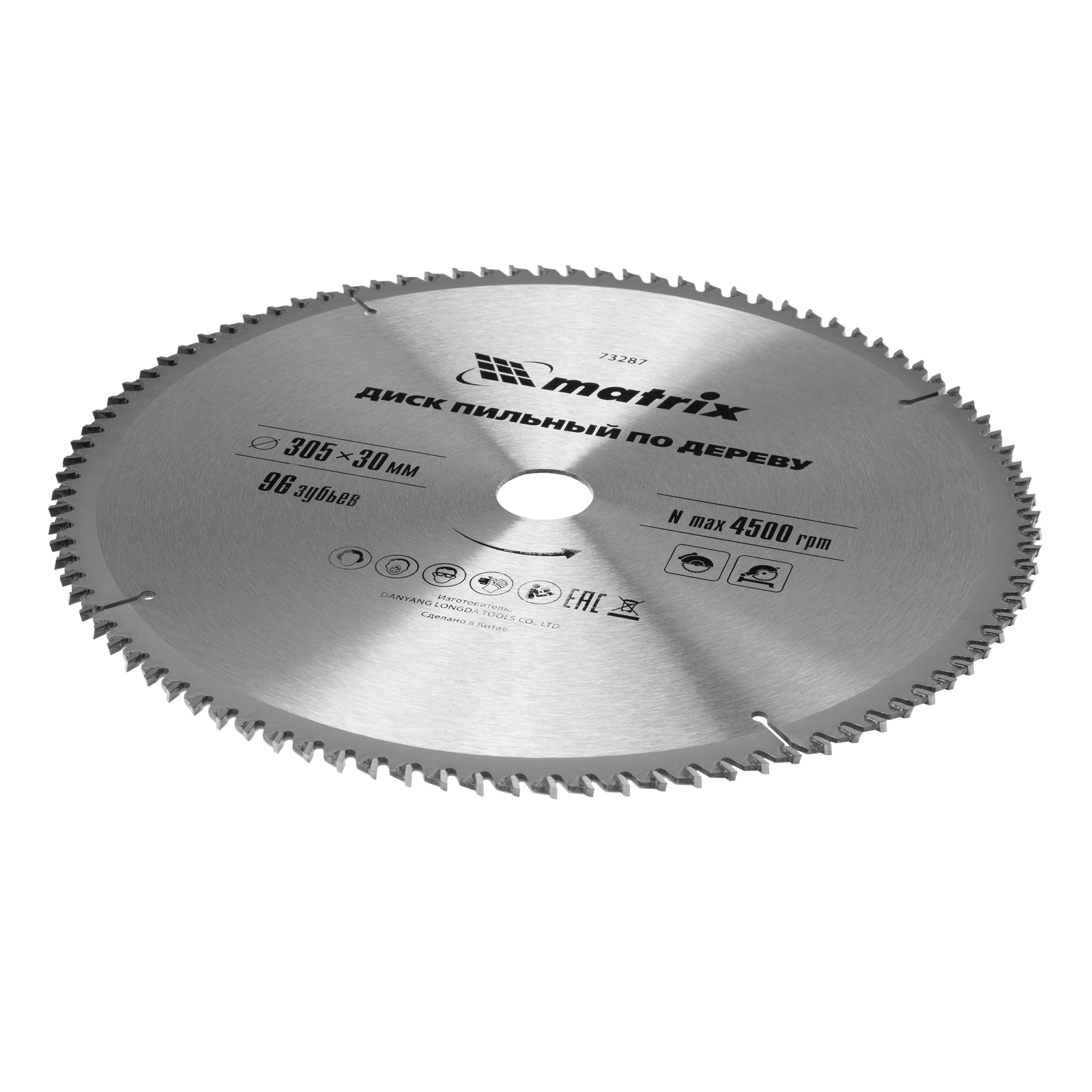 Пильный диск по дереву Matrix 73287 диаметром 305 х 30 мм, с 96 зубьями, — оснастка для циркулярных и торцовочных пил с соответствующим посадочным и внешним диаметром. Используется преимущественно для поперечного реза материалов из мягкой и твердой древесины, ДСП, ДВП, фанеры, столярных плит. Диск подходит для бытового и профессионального применения.