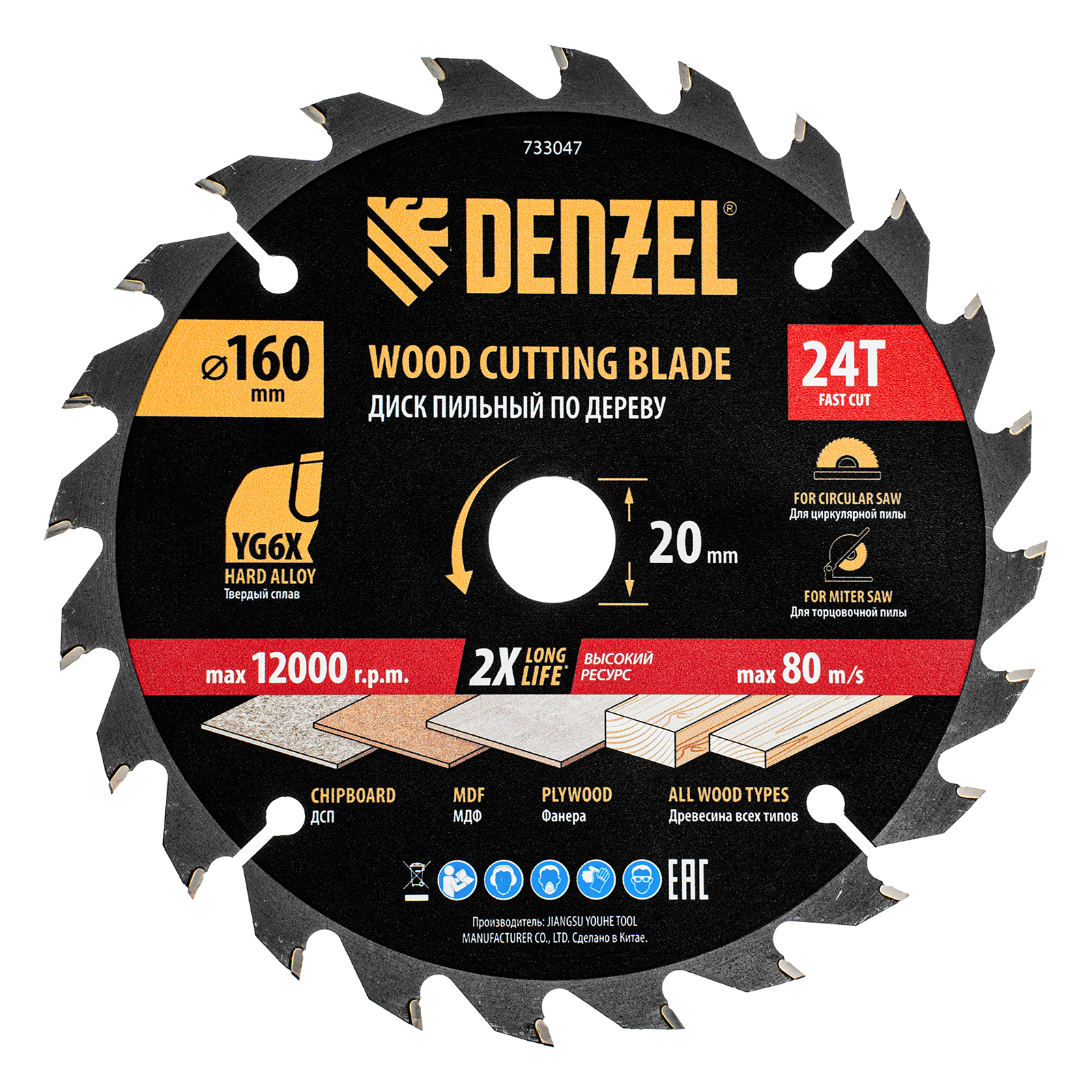 Пильный диск Denzel 733047 диаметром 160 x 20 мм, с 24 зубьями, предназначен для продольного и поперечного распила твердой и мягкой древесины, фанеры, МДФ, ДСП. 24 зуба типа ATB с режущими пластинами оптимальной геометрии обеспечивают быстрый рез. Режущие пластины из твердого сплава YG6X сохраняют рабочие свойства при интенсивном использовании. Диск устанавливается на циркулярную, торцовочную пилу или на распиловочный станок. В комплект поставки входит переходное кольцо с 20 на 16 мм, что позволяет изменить посадочный размер и расширяет возможности использования диска.