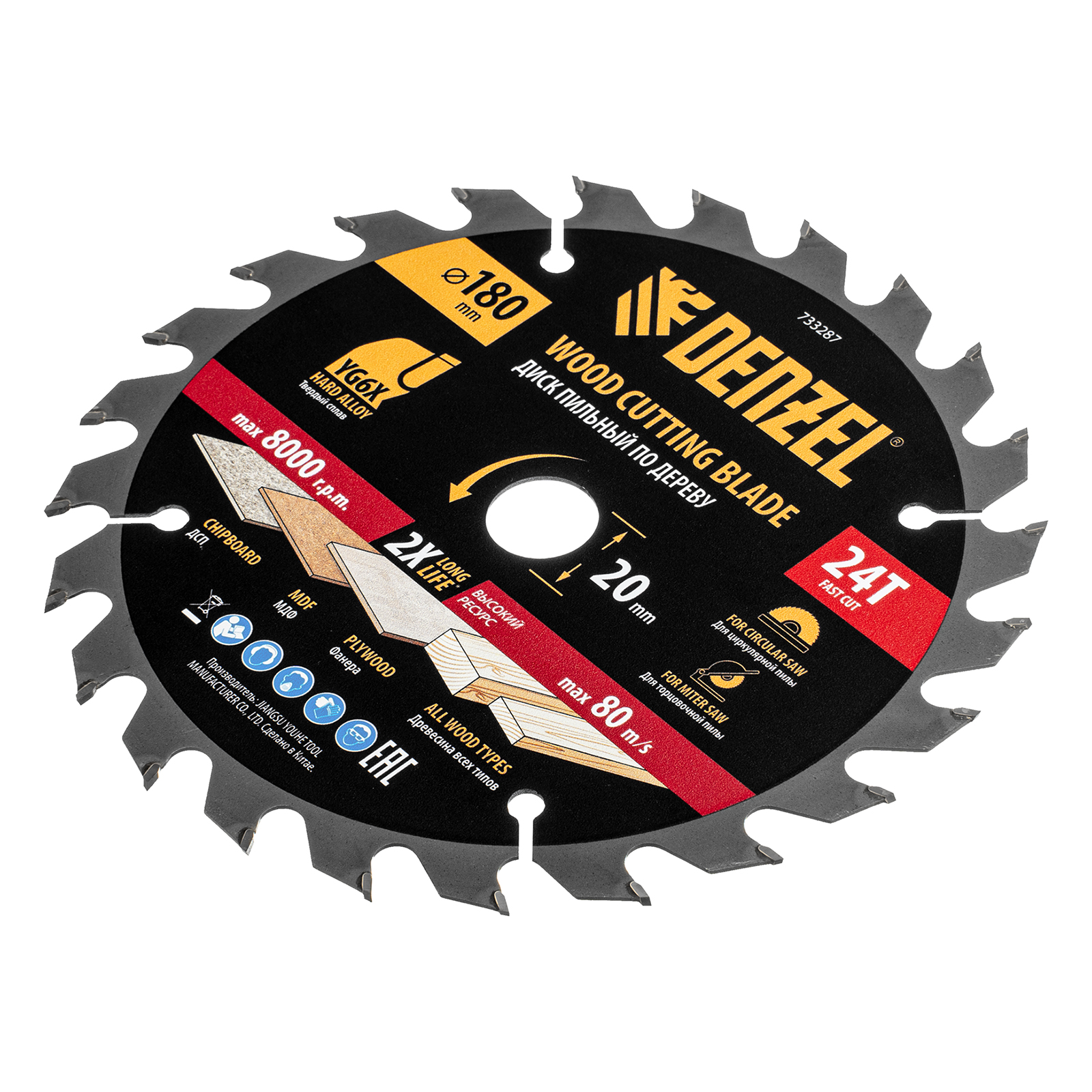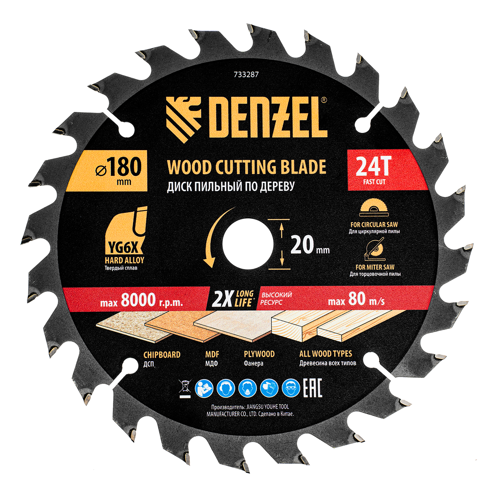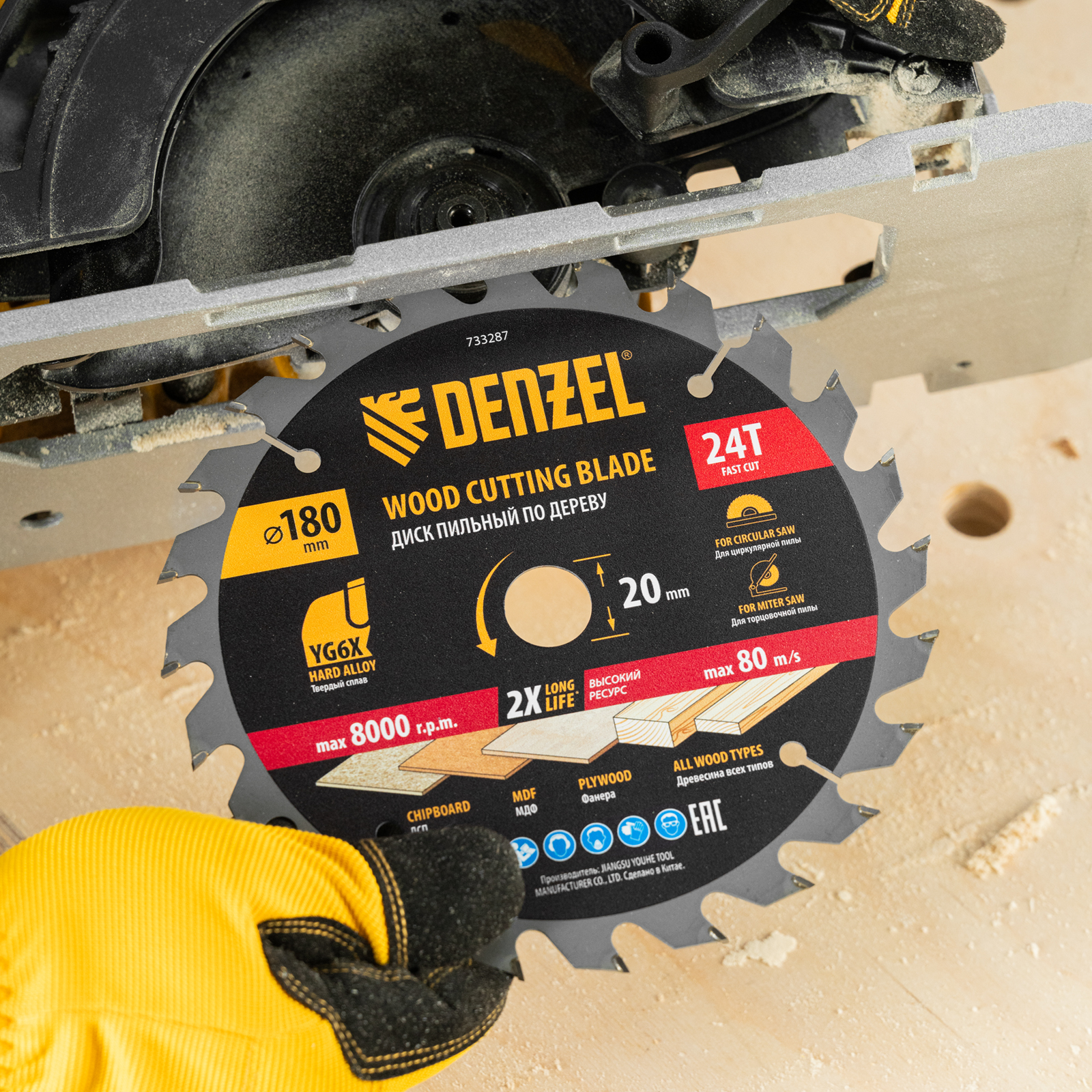 Пильный диск Denzel 733287 диаметром 180 x 20 мм, с 24 зубьями, предназначен для продольного и поперечного распила твердой и мягкой древесины, фанеры, МДФ, ДСП. 24 зубьев типа ATB с режущими пластинами оптимальной геометрии обеспечивают быстрый рез. Режущие пластины из твердого сплава YG6X сохраняют рабочие свойства при интенсивном использовании. Диск устанавливается на циркулярную, торцовочную пилу или на распиловочный станок. В комплект поставки входит переходное кольцо с 20 на 16 мм, что позволяет изменить посадочный размер и расширяет возможности использования диска.