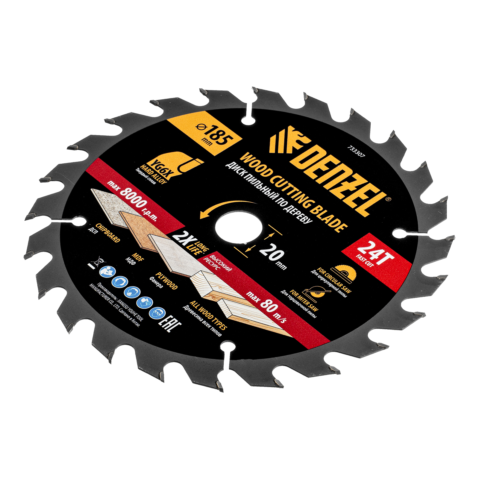 Пильный диск Denzel 733307 диаметром 185 x 20 мм, с 24 зубьями, предназначен для продольного и поперечного распила твердой и мягкой древесины, фанеры, МДФ, ДСП. 24 зуба типа ATB с режущими пластинами оптимальной геометрии обеспечивают быстрый рез. Режущие пластины из твердого сплава YG6X сохраняют рабочие свойства при интенсивном использовании. Диск устанавливается на циркулярную, торцовочную пилу или на распиловочный станок. В комплект поставки входит переходное кольцо с 20 на 16 мм, что позволяет изменить посадочный размер и расширяет возможности использования диска.