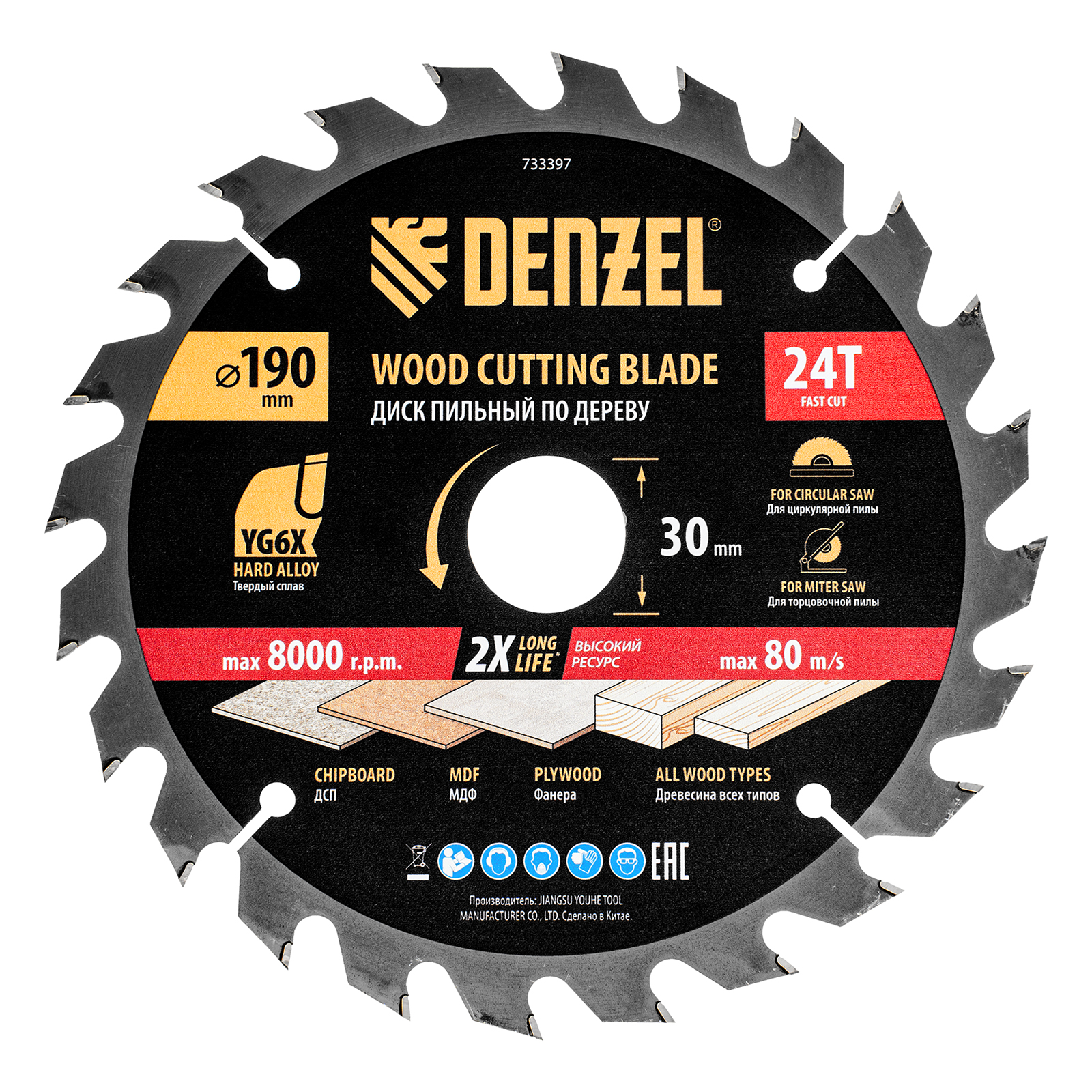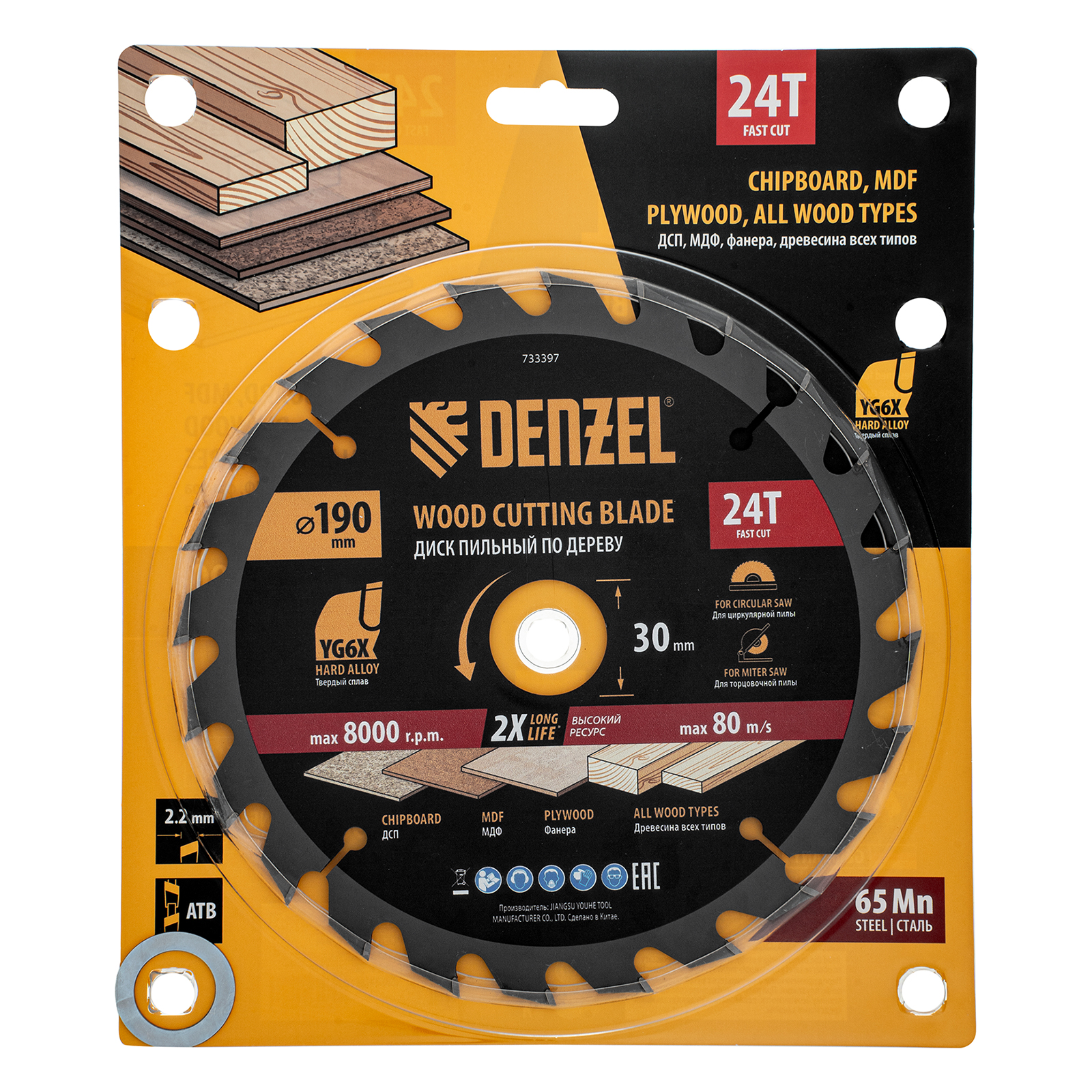 Пильный диск Denzel 733397 диаметром 190 x 30 мм, с 24 зубьями, предназначен для продольного и поперечного распила твердой и мягкой древесины, фанеры, МДФ, ДСП. 24 зуба типа ATB с режущими пластинами оптимальной геометрии обеспечивают быстрый рез. Режущие пластины из твердого сплава YG6X сохраняют рабочие свойства при интенсивном использовании. Диск устанавливается на циркулярную, торцовочную пилу или на распиловочный станок. В комплект поставки входит переходное кольцо с 30 на 20 мм, что позволяет изменить посадочный размер и расширяет возможности использования диска.