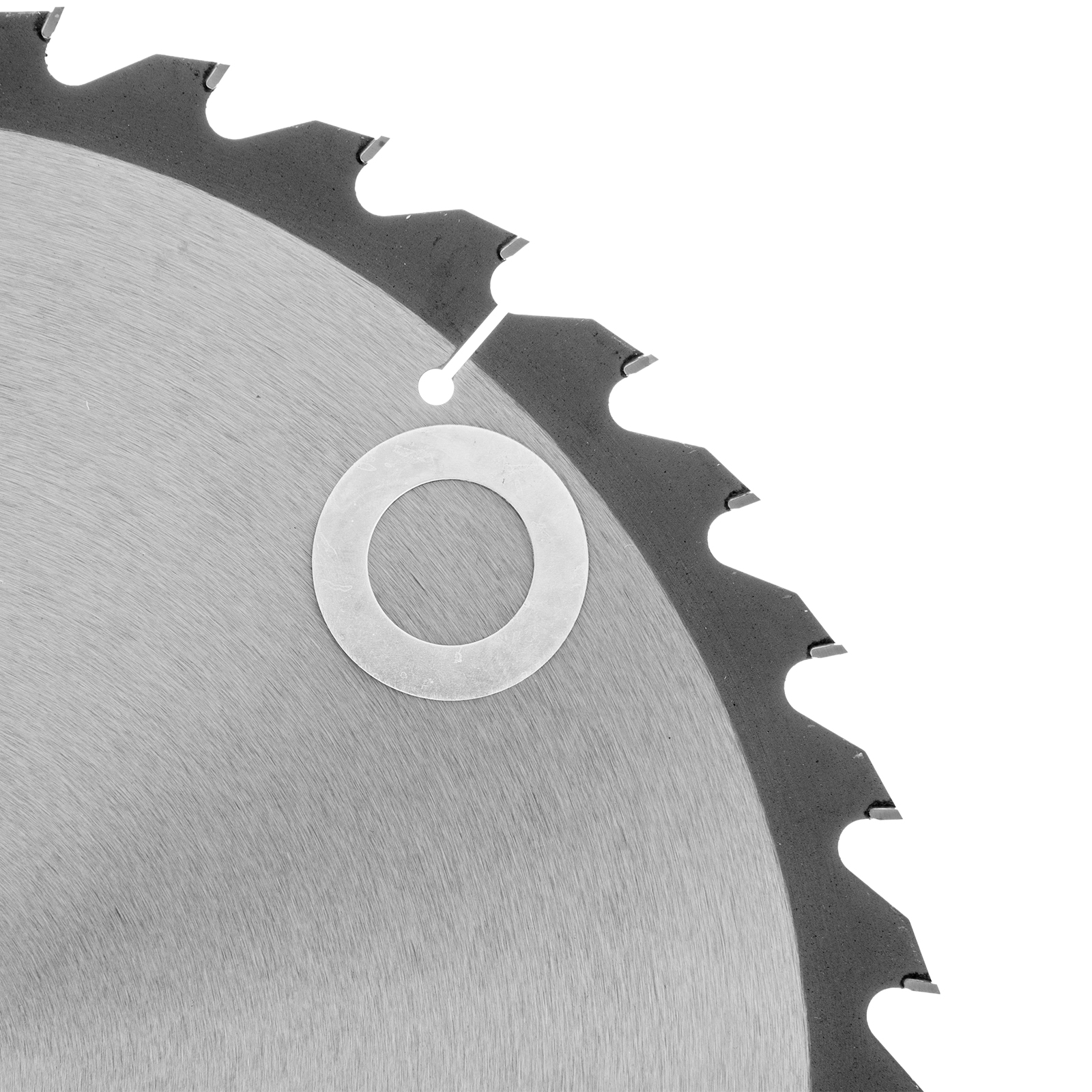 Пильный диск Denzel 733717 диаметром 400 x 50 мм, с 40 зубьями, предназначен для продольного и поперечного распила твердой и мягкой древесины, фанеры, МДФ, ДСП. 40 зубьев типа ATB с режущими пластинами оптимальной геометрии обеспечивают качественный рез. Тип реза — стандартный. Режущие пластины из твердого сплава YG6X сохраняют рабочие свойства при интенсивном использовании. Диск устанавливается на циркулярную, торцовочную пилу или на распиловочный станок. В комплект поставки входит переходное кольцо с 50 на 32 мм, что позволяет изменить посадочный размер и расширяет возможности использования диска.