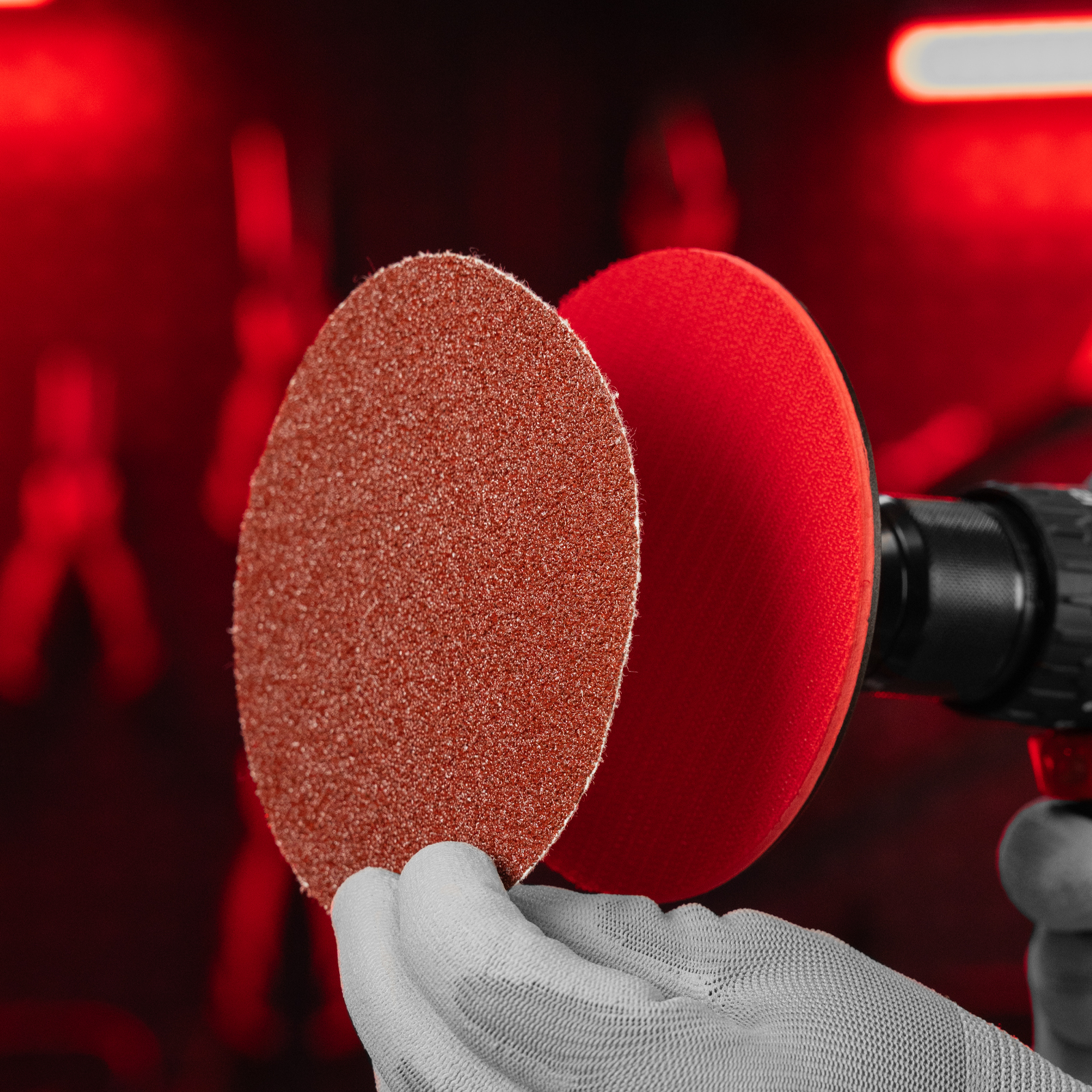 - Ворсовая подложка позволяет быстро крепить круг к опорной тарелке на липучку.