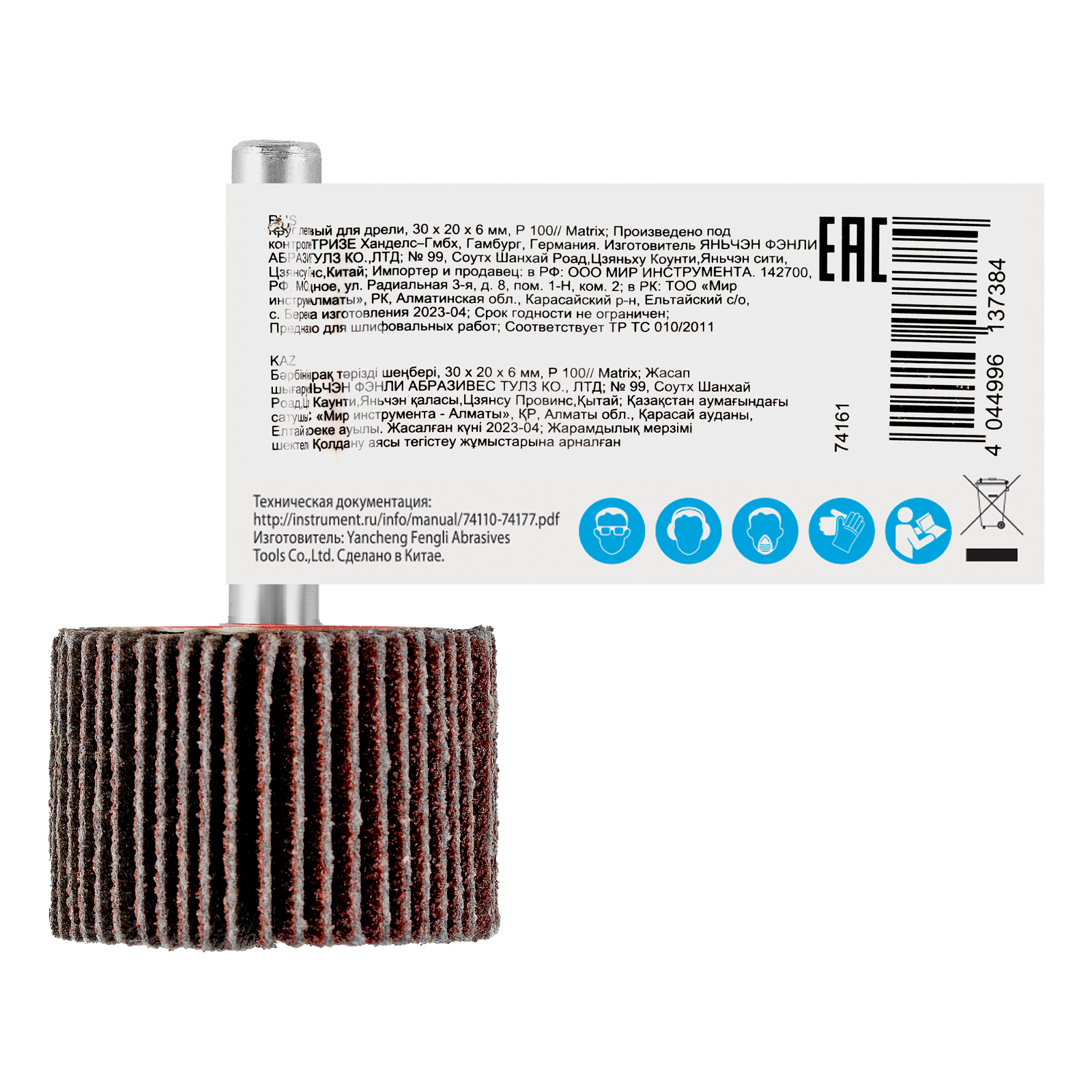 Лепестковый круг Matrix 74161 размером 30 х 20 х 6 мм, с зернистостью P 100, устанавливается в патрон дрели или прямой шлифовальной машины с посадочным диаметром 6 мм и максимальной скоростью вращения 16000 об/мин. Применяется для радиальной шлифовки внутренних и наружных поверхностей. Среднезернистый абразив P 100 успешно справляется с промежуточной обработкой металла и древесины — снятием тонкого слоя лака, краски, ржавчины и заусенцев.