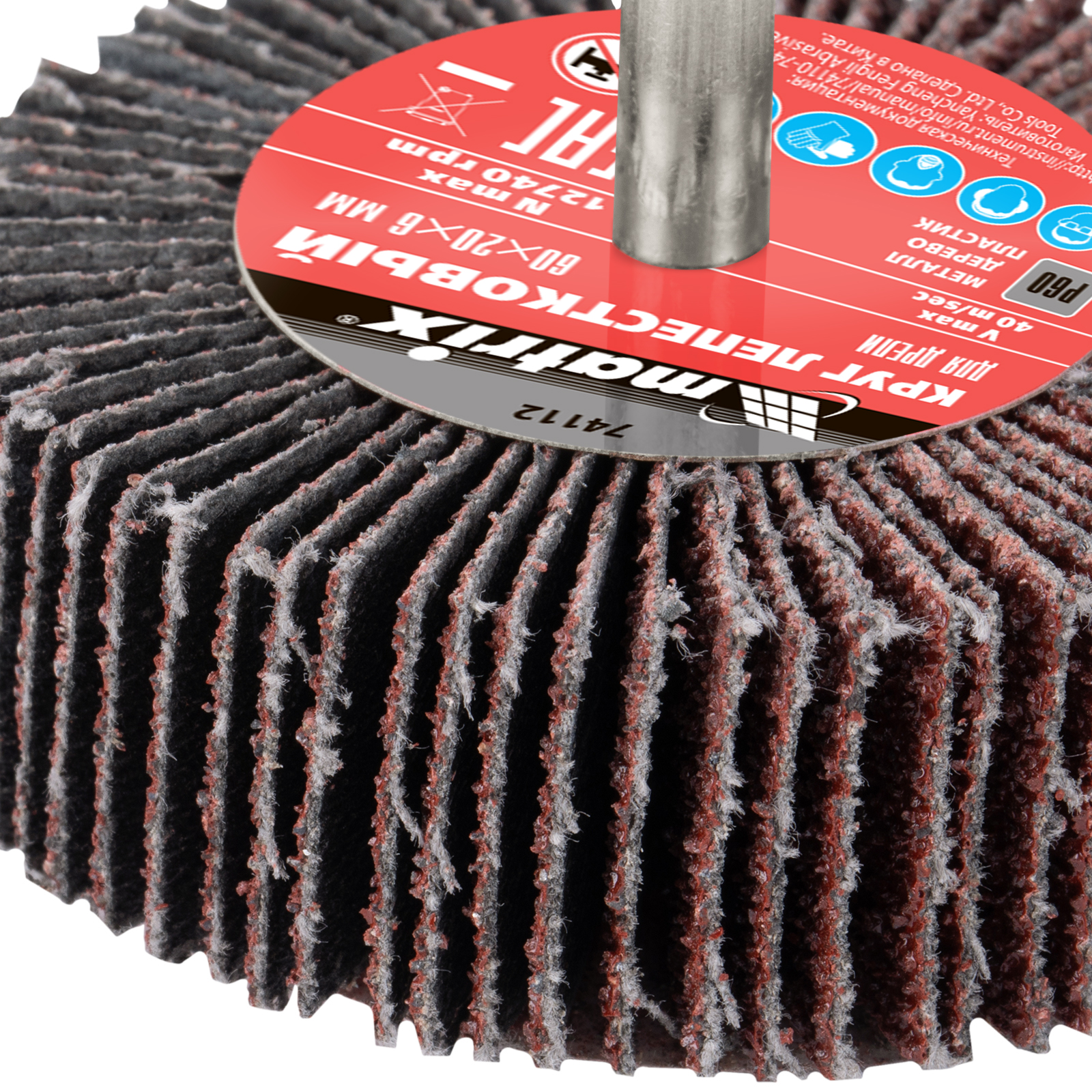 - Надежность — лепестки из прочной х/б ткани прикреплены к оправке при помощи бакелитовой смолы, поэтому круг устойчив к трению и давлению.